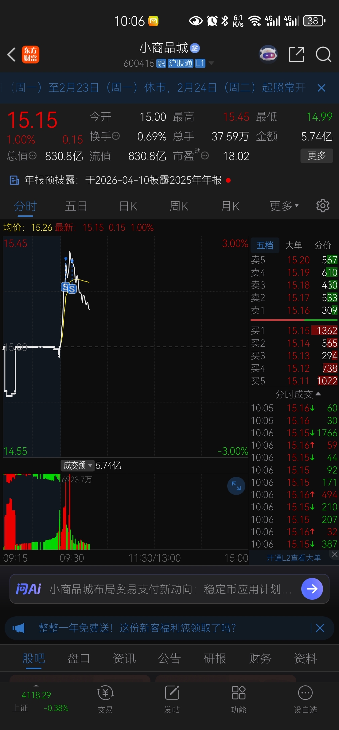 $小商品城(SH600415)$ 高位接盘的 半年回不了本