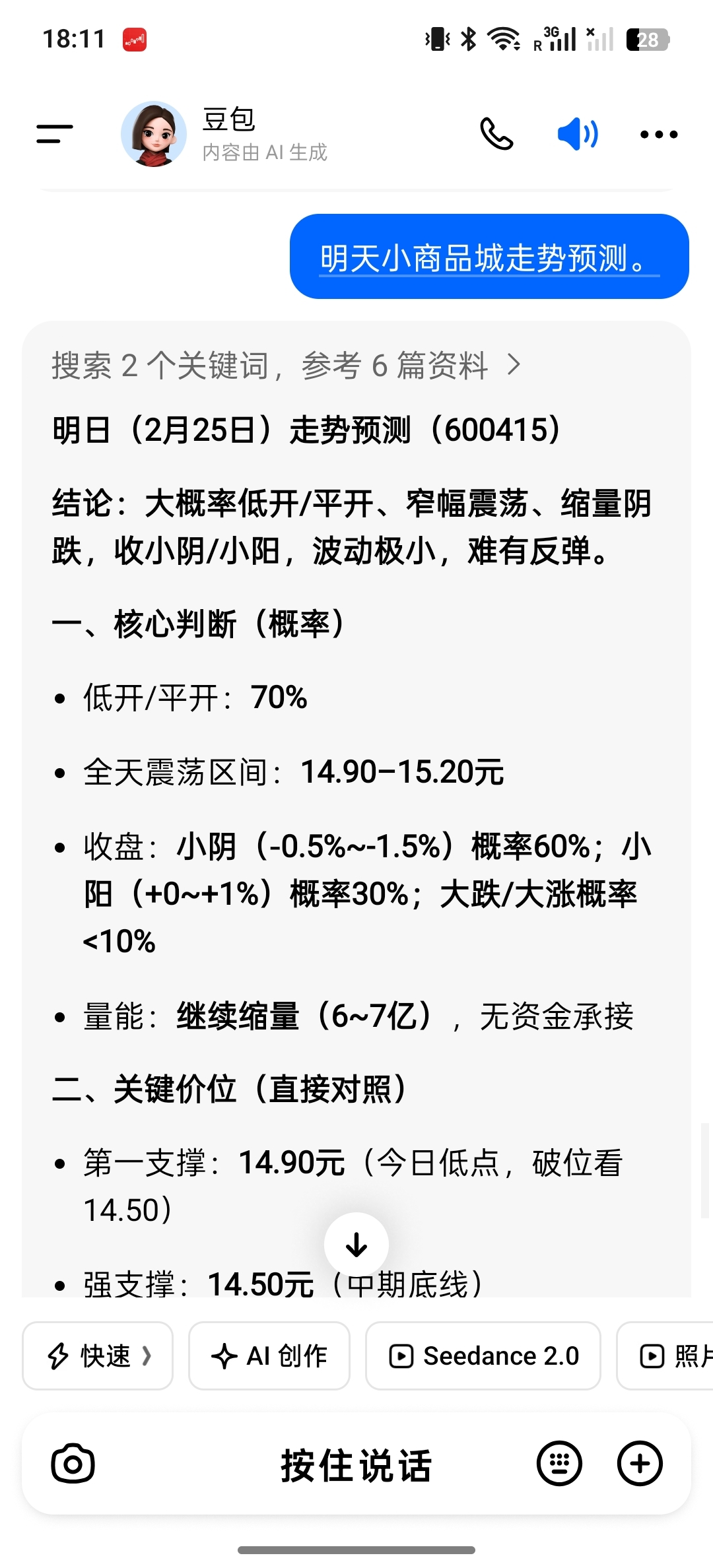 $小商品城(SH600415)$ 豆包说了明天最少还得跌-0.5大约就是一毛钱,星期三跌,黑色星期四继续跌,星期五在跌,最终结局就是一个月红2天,散户多买点