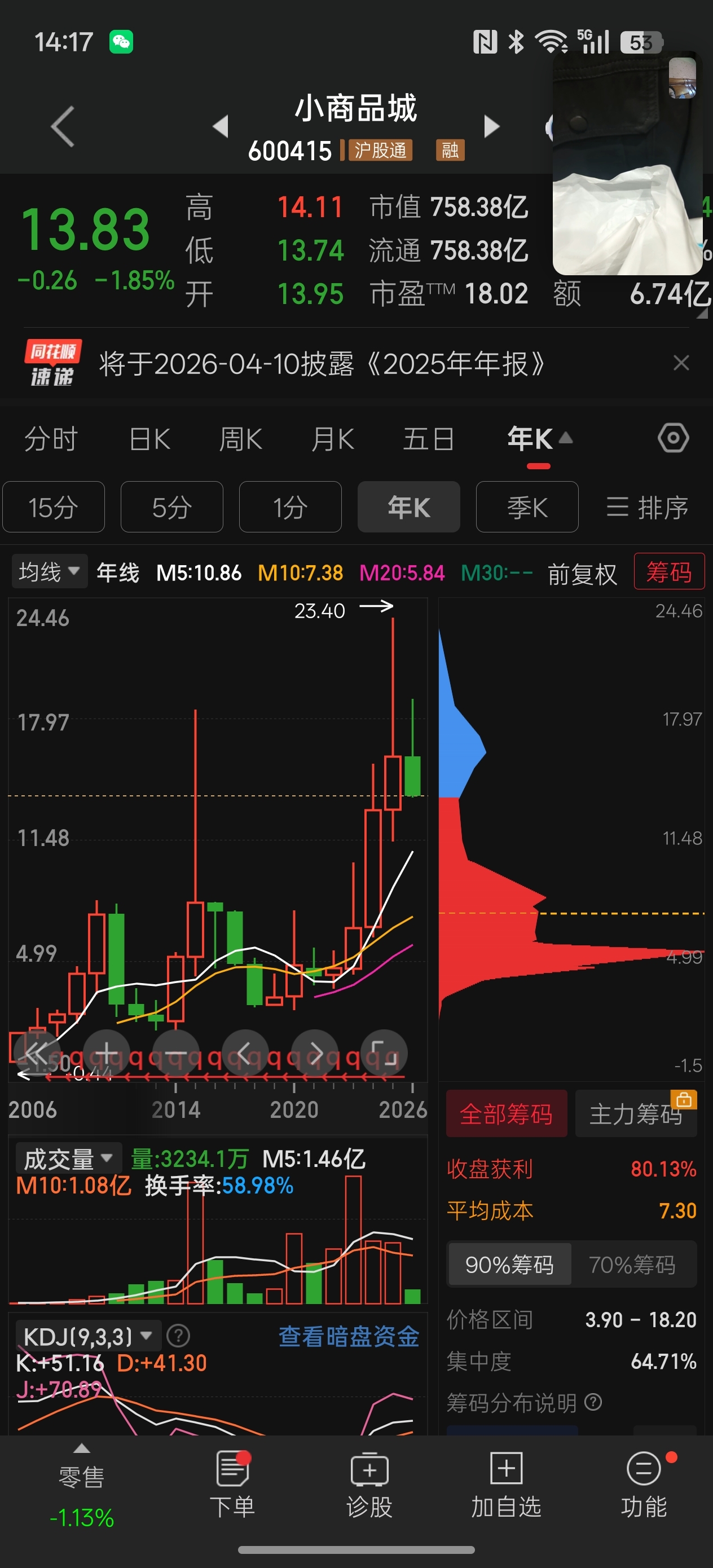 $小商品城(SH600415)$ 可恶!7.30成本