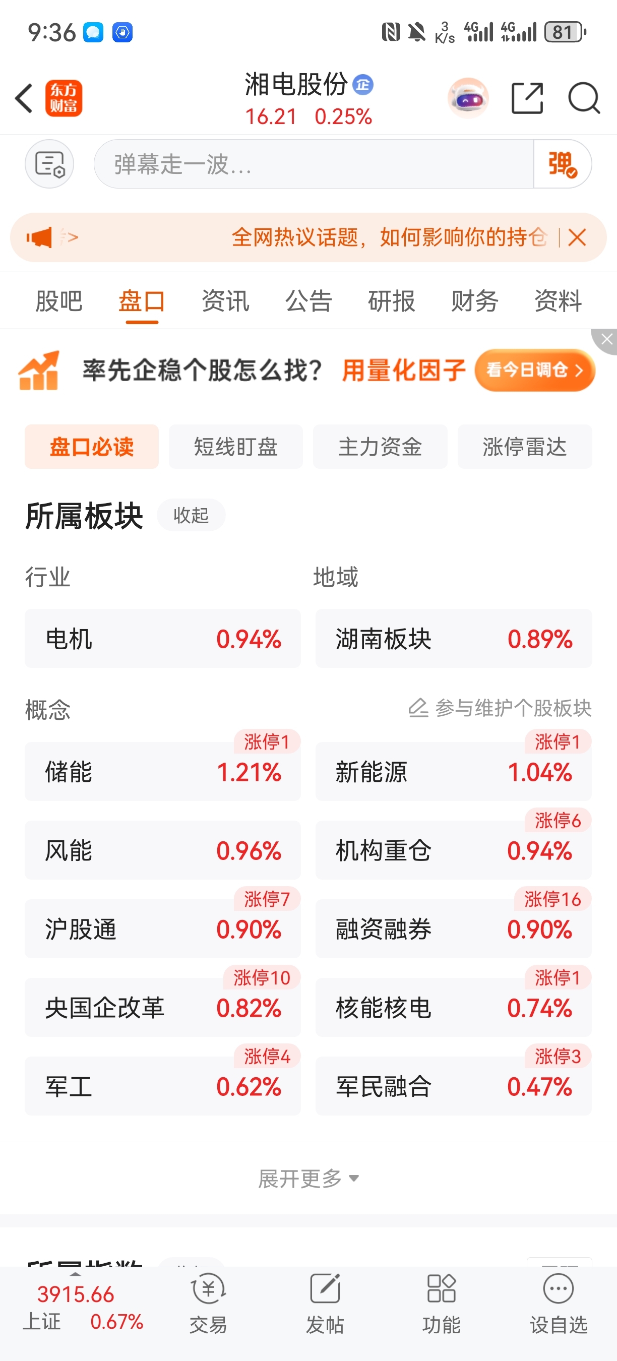 $湘电股份(SH600416)$ 不是大盘板块,今天已经跌好几个点了。