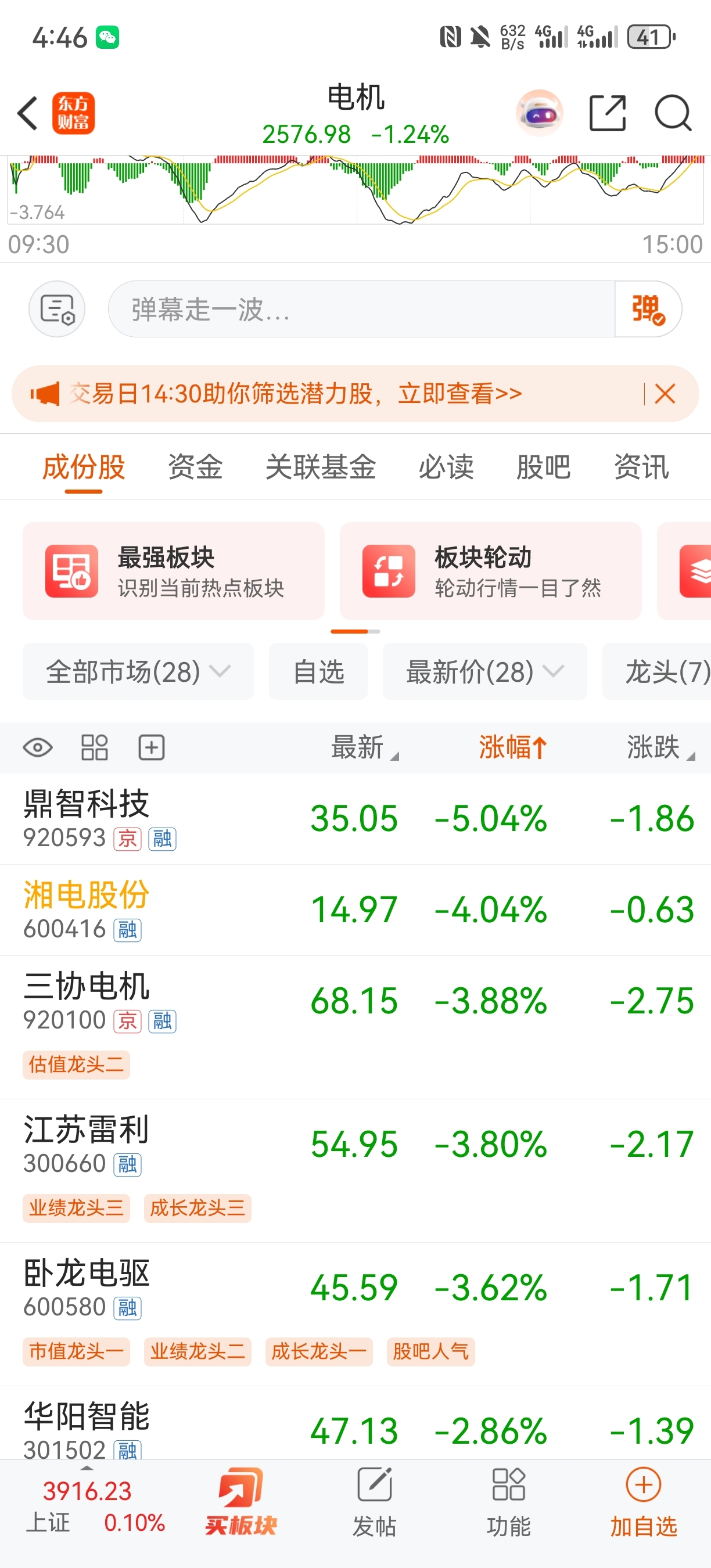 昨天电机板块大涨,这股不跟,我还在问这股属于啥板块的,今天电机板块回调下,这股跌