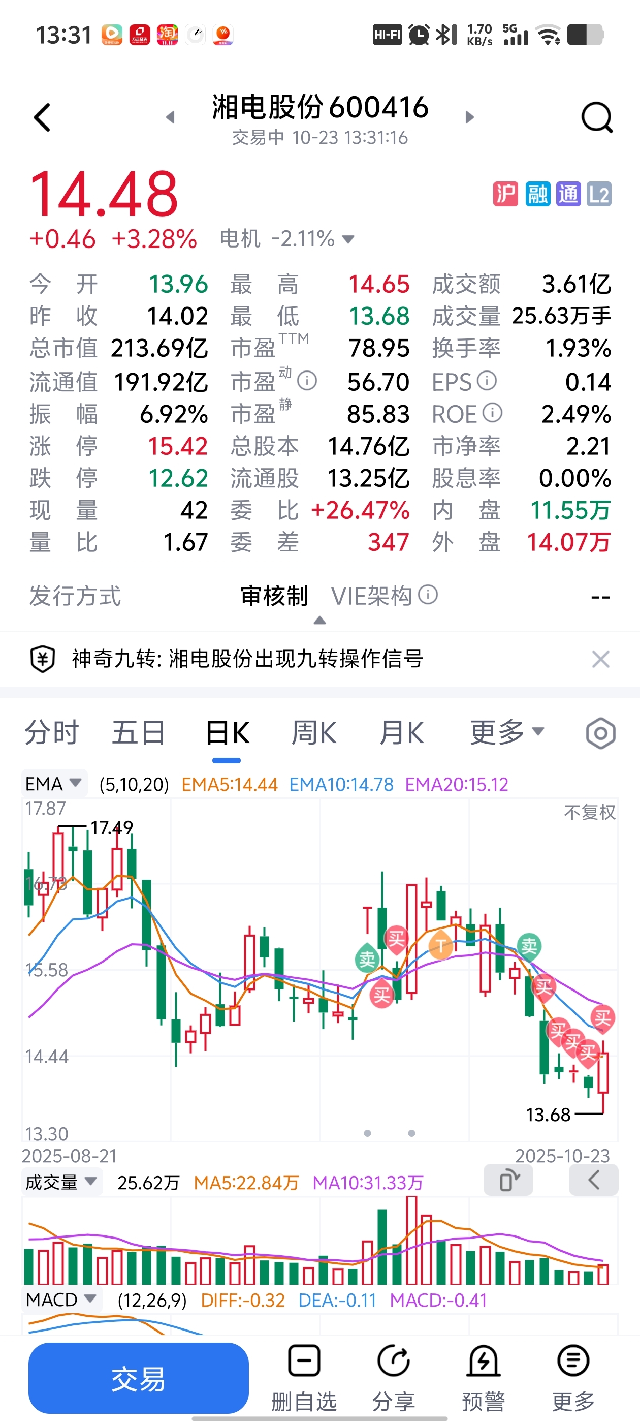 $湘电股份(SH600416)$ 这几天已经分批建仓完成,不信谣,不传谣。按照适合自己的交易方式才是最正确的,上次说过日线没有十字心不建仓。