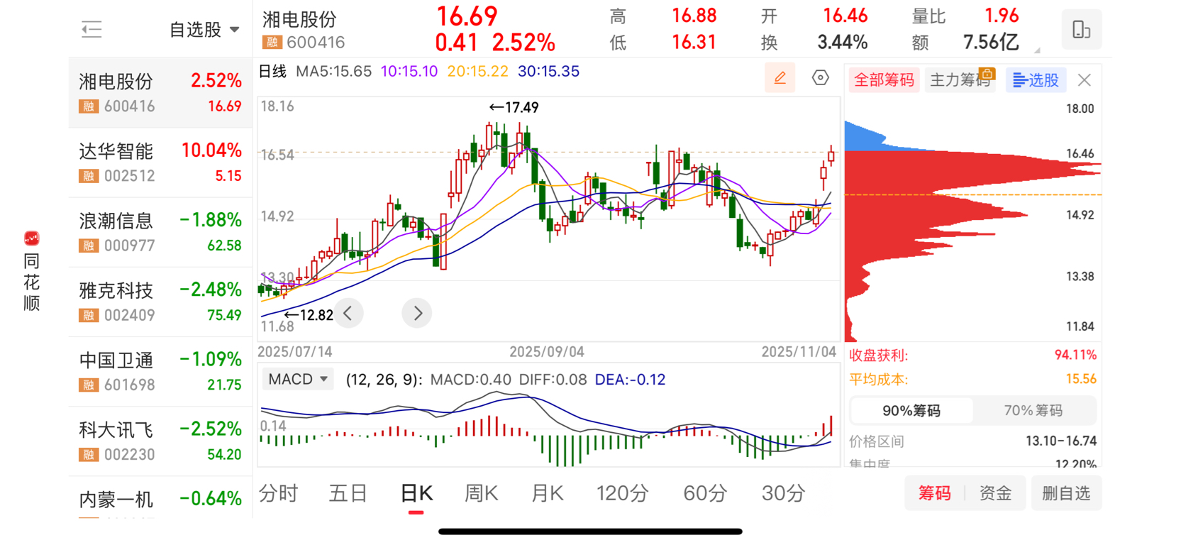 $湘电股份(SH600416)$ 上方已经没筹码了……