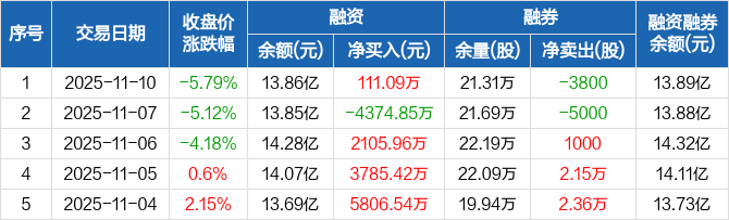 湘电股份:融资净买入111.09万元,融资余额13.86亿元(11-10)