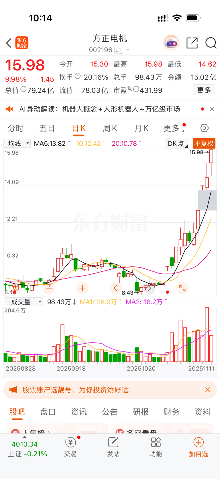 温馨提示: 1.根据《证券法》规定,禁止编造、传播虚假信息或者误导性信息,扰乱证券市场;2.用户在本社区发表的所有资料、言论等仅代表个人观点,与本网站立场无关,不对您构成任何投资建议。用户应基于自己的独立判断,自行决定证券投资并承担相应风险。《东方财富社区管理规定》
