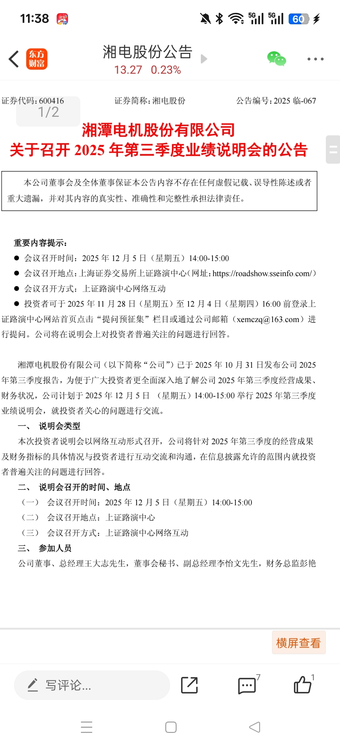 $湘电股份(SH600416)$ 下午记得看路演中心问答。脉冲就在今天。商业航天没理由的不起来。其它机构也会来吧毕竟低位正宗。现在干净的衬衫几乎没有了