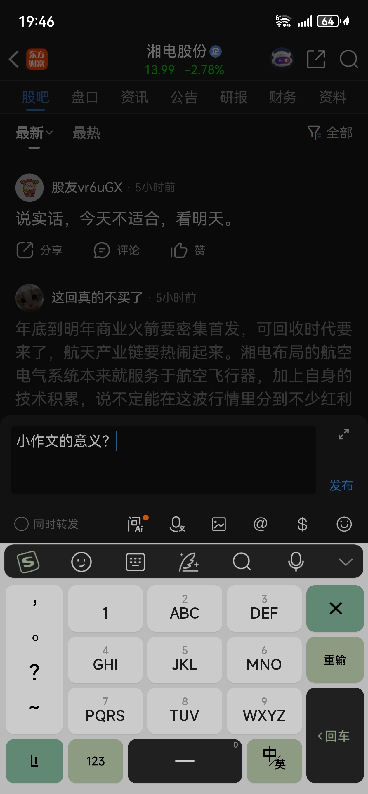 温馨提示: 1.根据《证券法》规定,禁止编造、传播虚假信息或者误导性信息,扰乱证券市场;2.用户在本社区发表的所有资料、言论等仅代表个人观点,与本网站立场无关,不对您构成任何投资建议。用户应基于自己的独立判断,自行决定证券投资并承担相应风险。《东方财富社区管理规定》