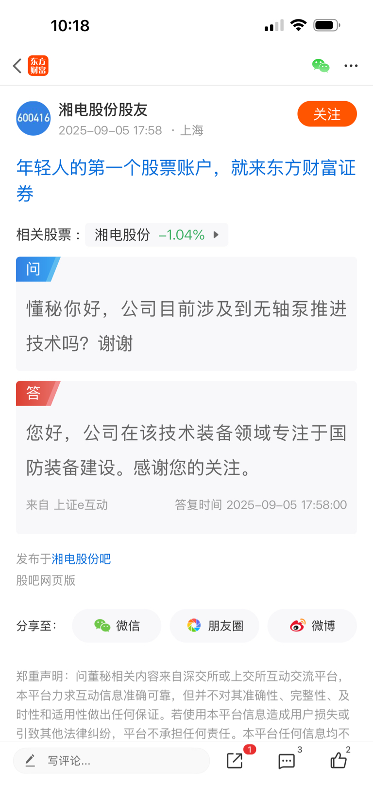 温馨提示: 1.根据《证券法》规定,禁止编造、传播虚假信息或者误导性信息,扰乱证券市场;2.用户在本社区发表的所有资料、言论等仅代表个人观点,与本网站立场无关,不对您构成任何投资建议。用户应基于自己的独立判断,自行决定证券投资并承担相应风险。《东方财富社区管理规定》
