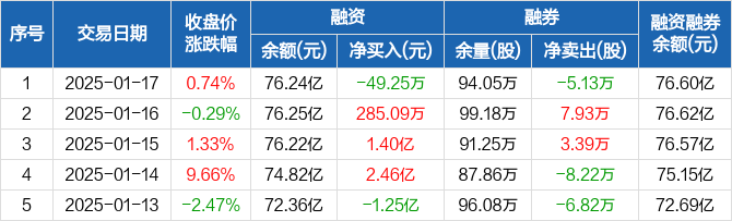 江淮汽车:融资净偿还49.25万元,融资余额76.24亿元(01-17)