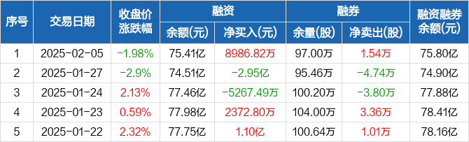 江淮汽车:融资净买入8986.82万元,融资余额75.41亿元(02-05)
