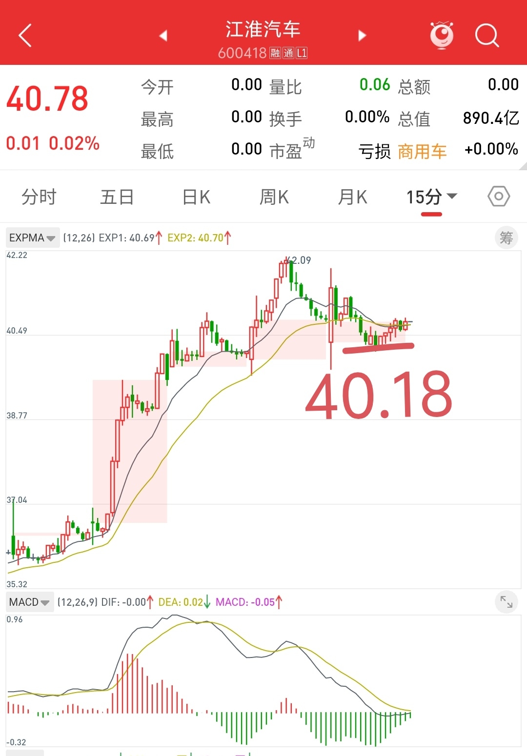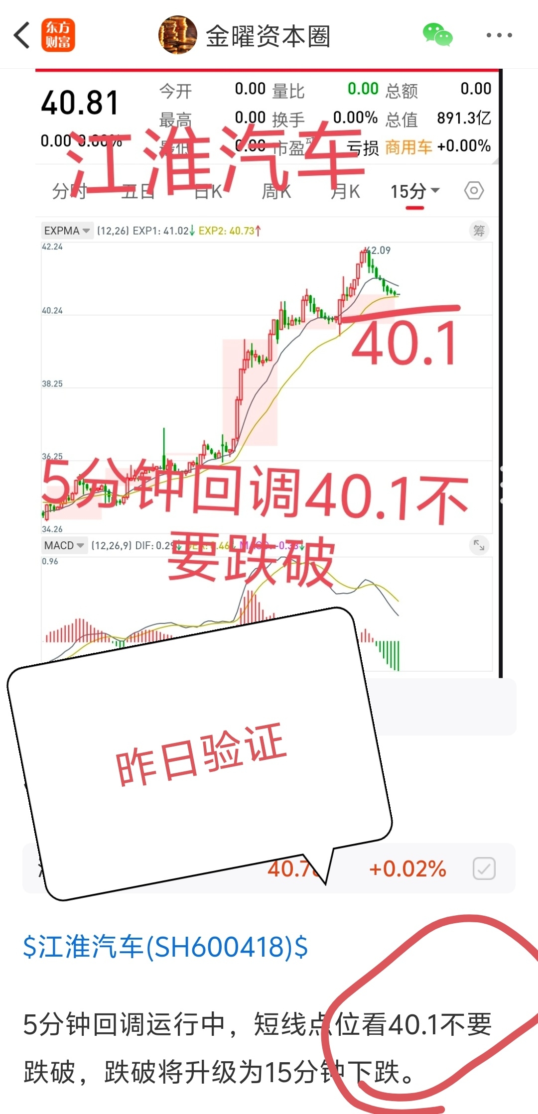 昨天说了40.1是一个5分钟的一个支撑位置,实际走势打到40.18,完美符合。今天继续看5分钟支撑,点位在39.9。#复盘记录#  #炒股日记#