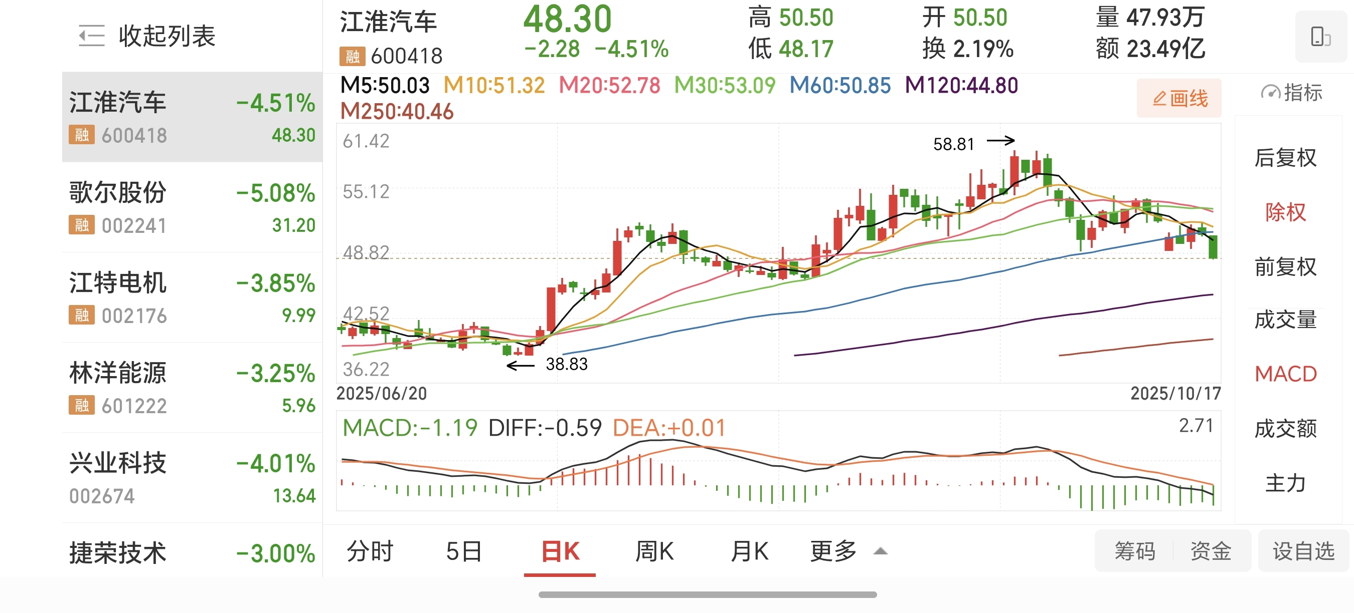 $江淮汽车(SH600418)$ 预想:下周一低开探底回升(有个双底机会),然后横盘震荡,周二大涨,周三冲高回落。。江淮收盘48.30,正好位置和股价都几乎一样。。这周最大的错误就是本来今天看大跌的,昨晚重新改为看涨了。预想走势图