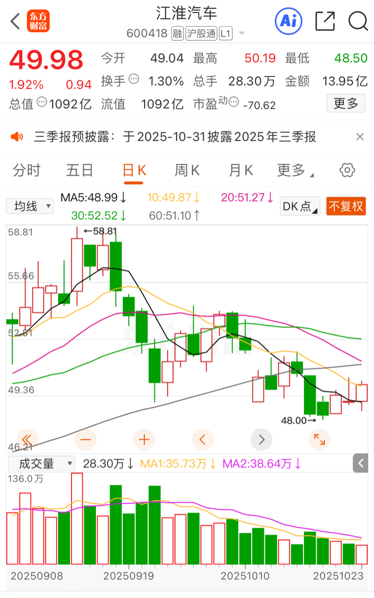 $江淮汽车(SH600418)$ 跌了20%涨2个点又热闹