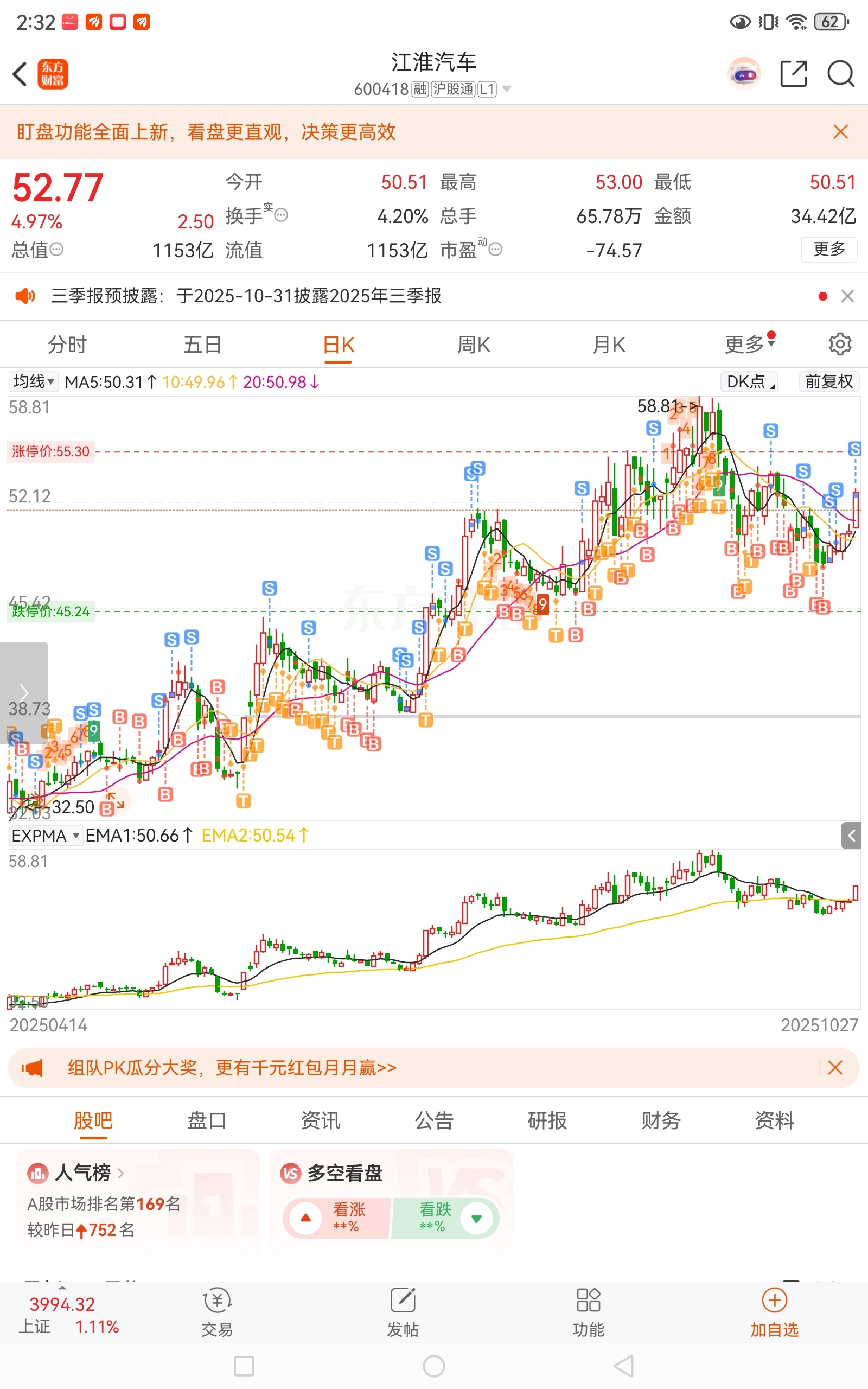 $江淮汽车(SH600418)$ 我的淮淮快快涨