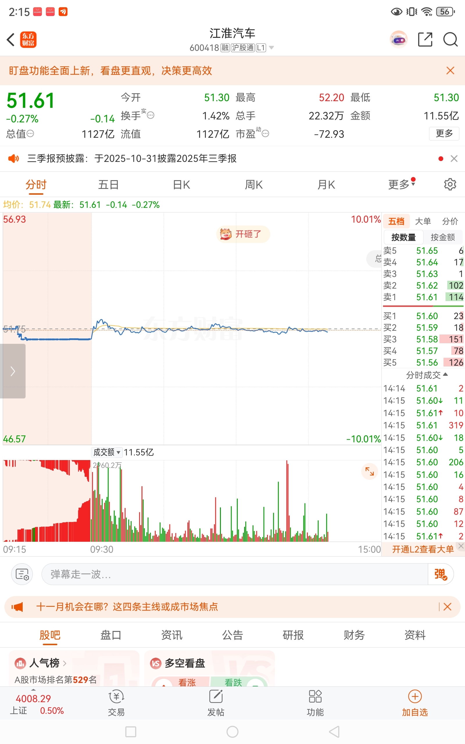 $江淮汽车(SH600418)$ 今天能做的就是等,不操作