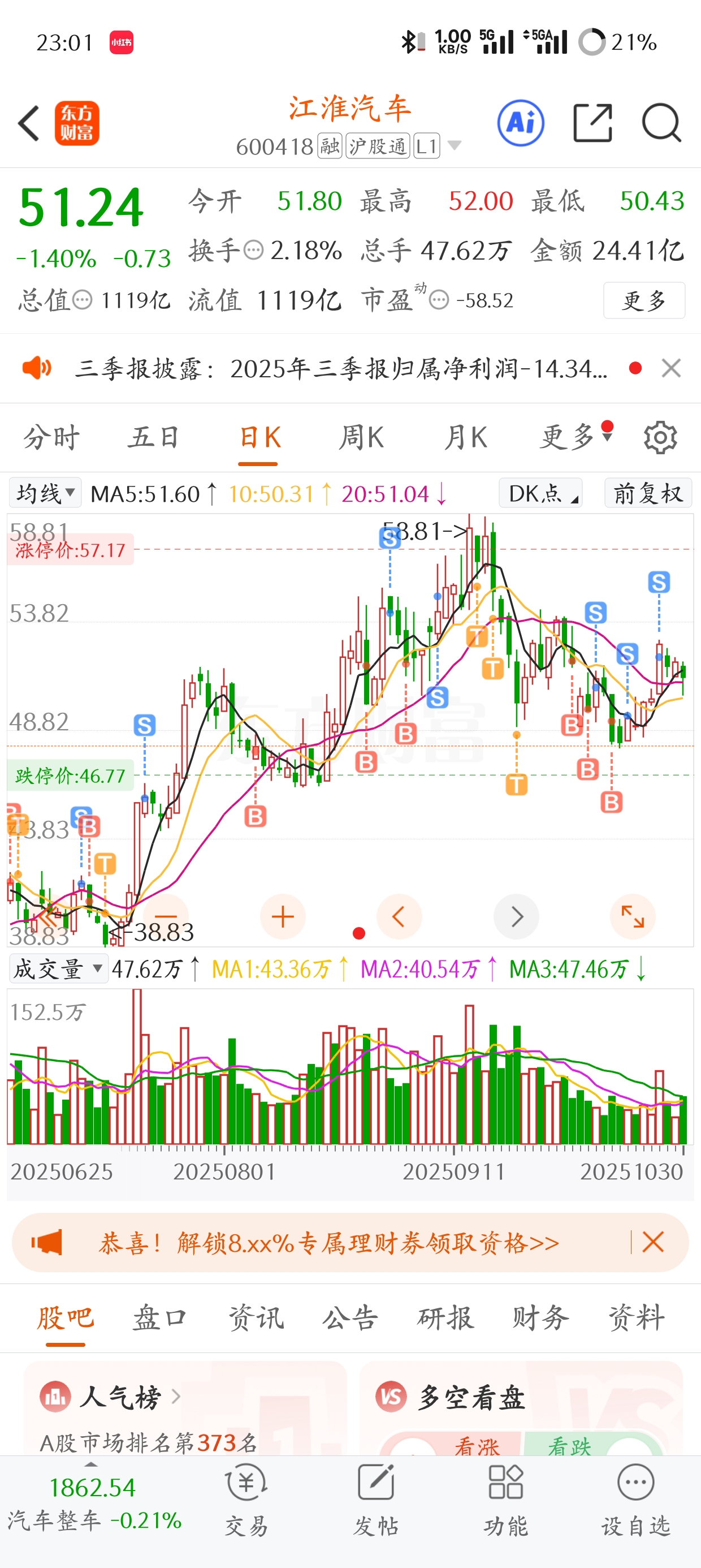 $江淮汽车(SH600418)$ 怎么搞,这个月还亏三个点