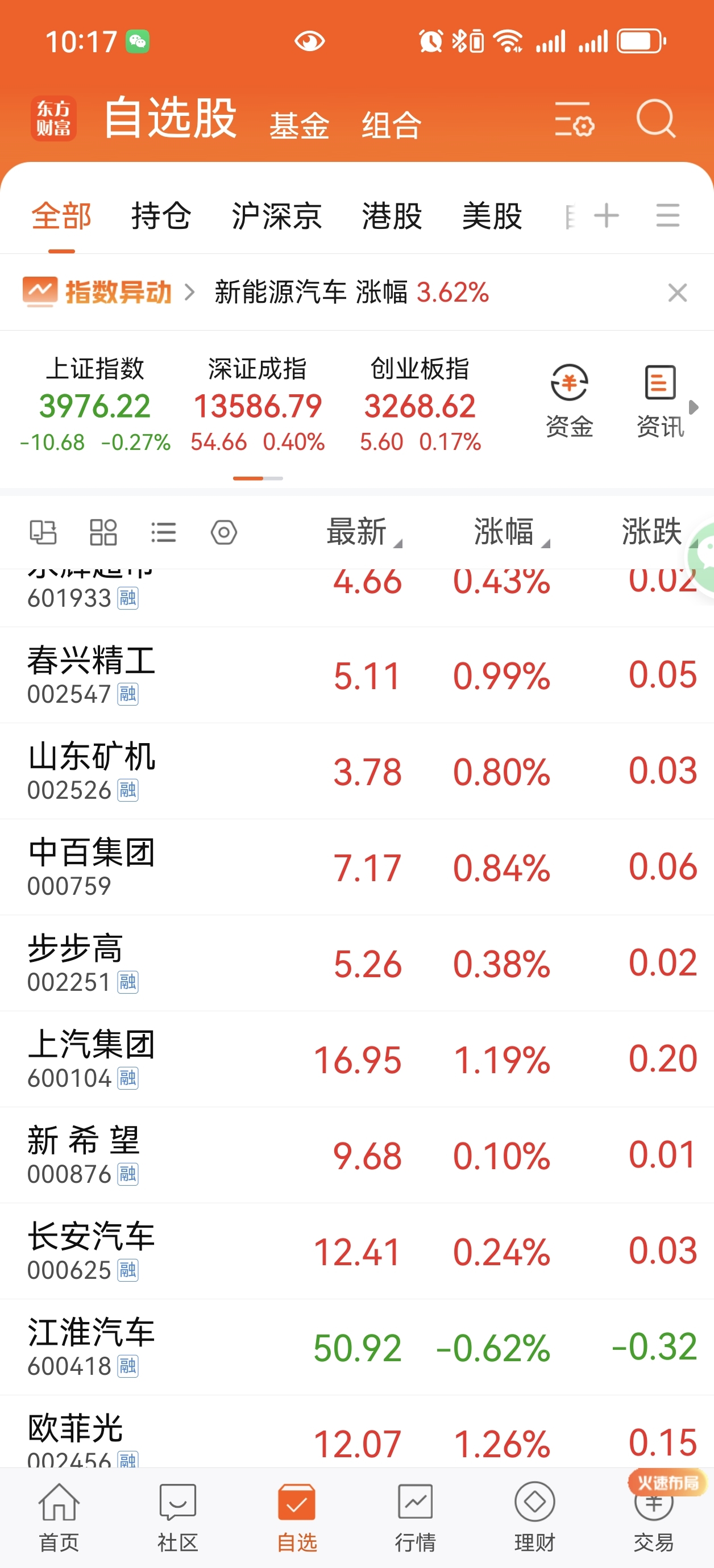 $江淮汽车(SH600418)$ #炒股日记# 自选里就你一支绿