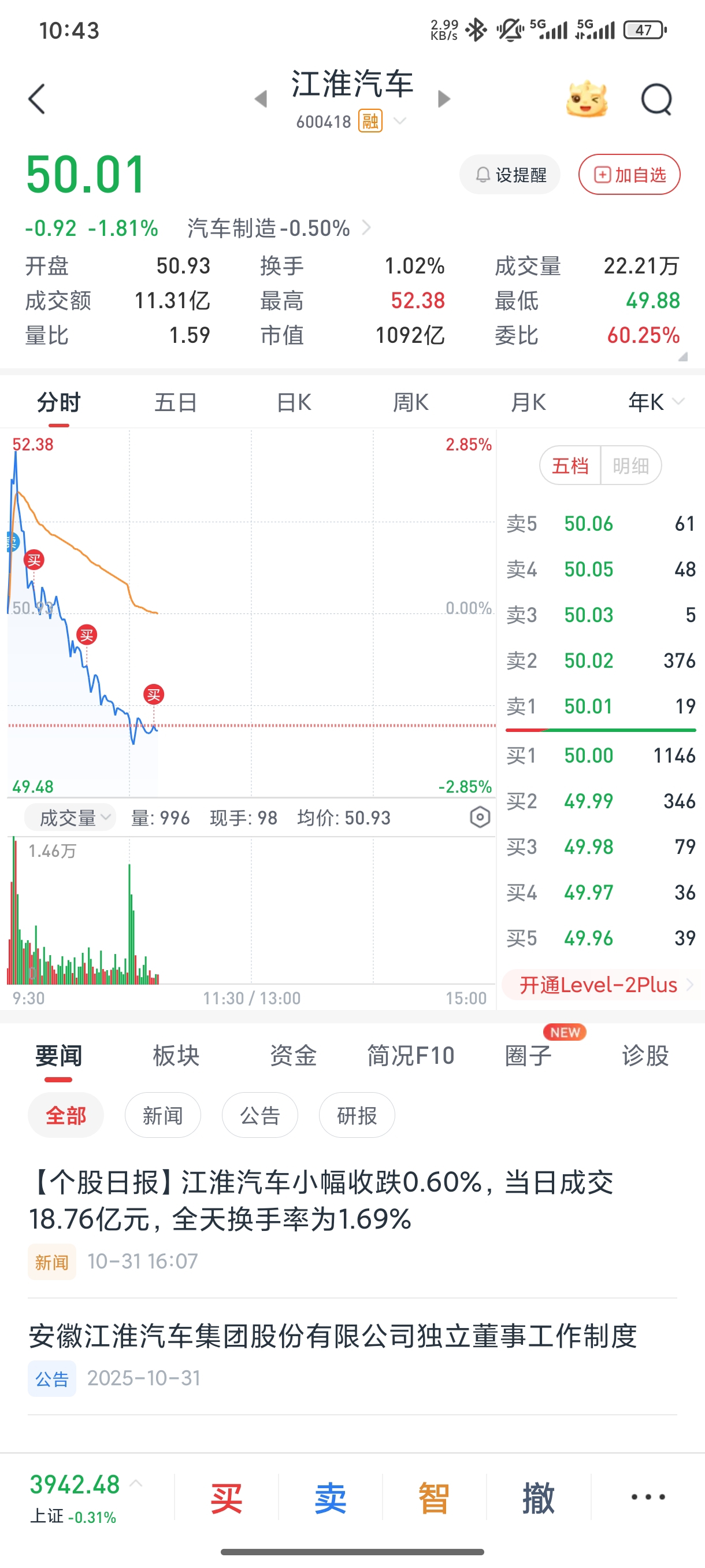 $江淮汽车(SH600418)$ 不抛弃,不放弃