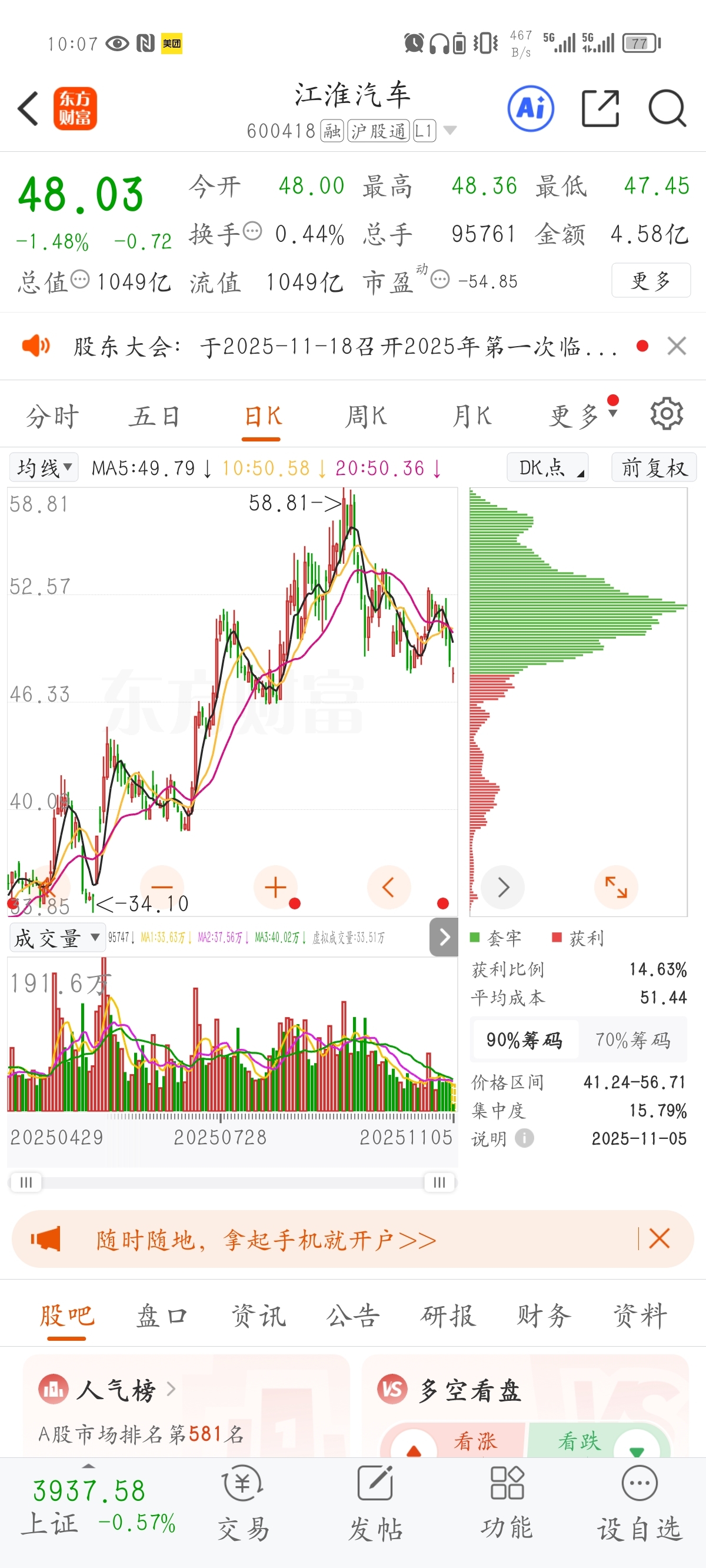 $江淮汽车(SH600418)$ 你是主力的话,要怎么拉才能涨上去
