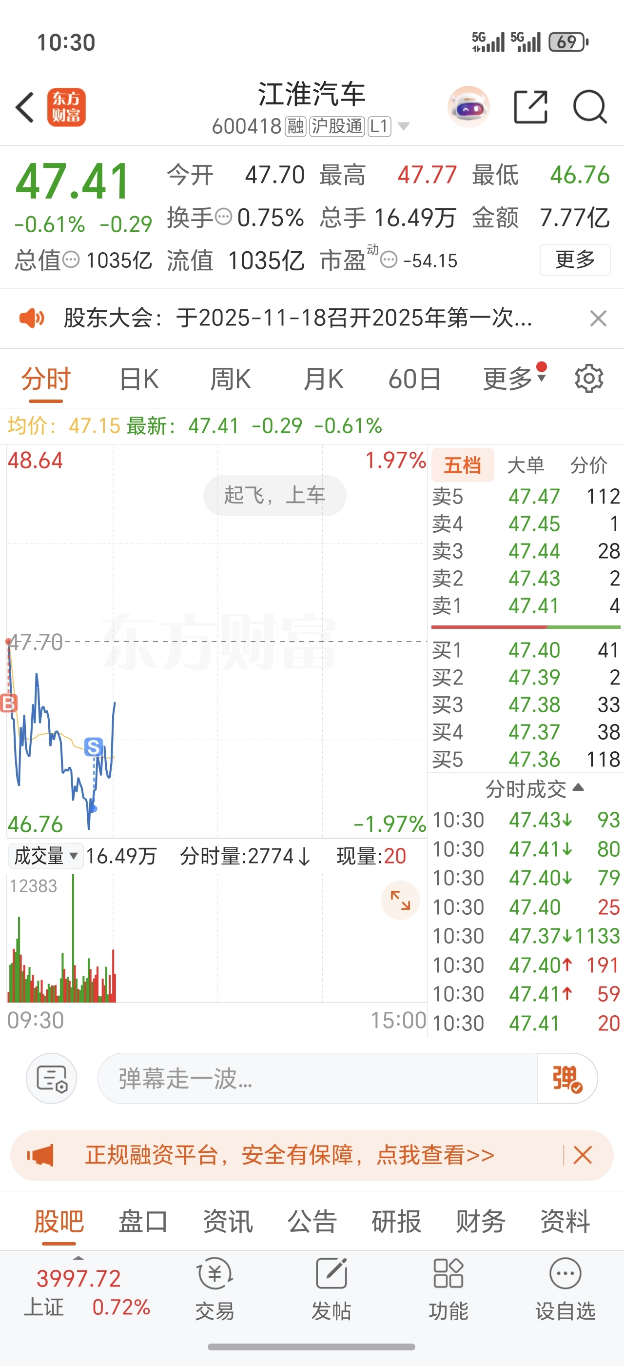 $江淮汽车(SH600418)$ 我是服了就盯着我呗