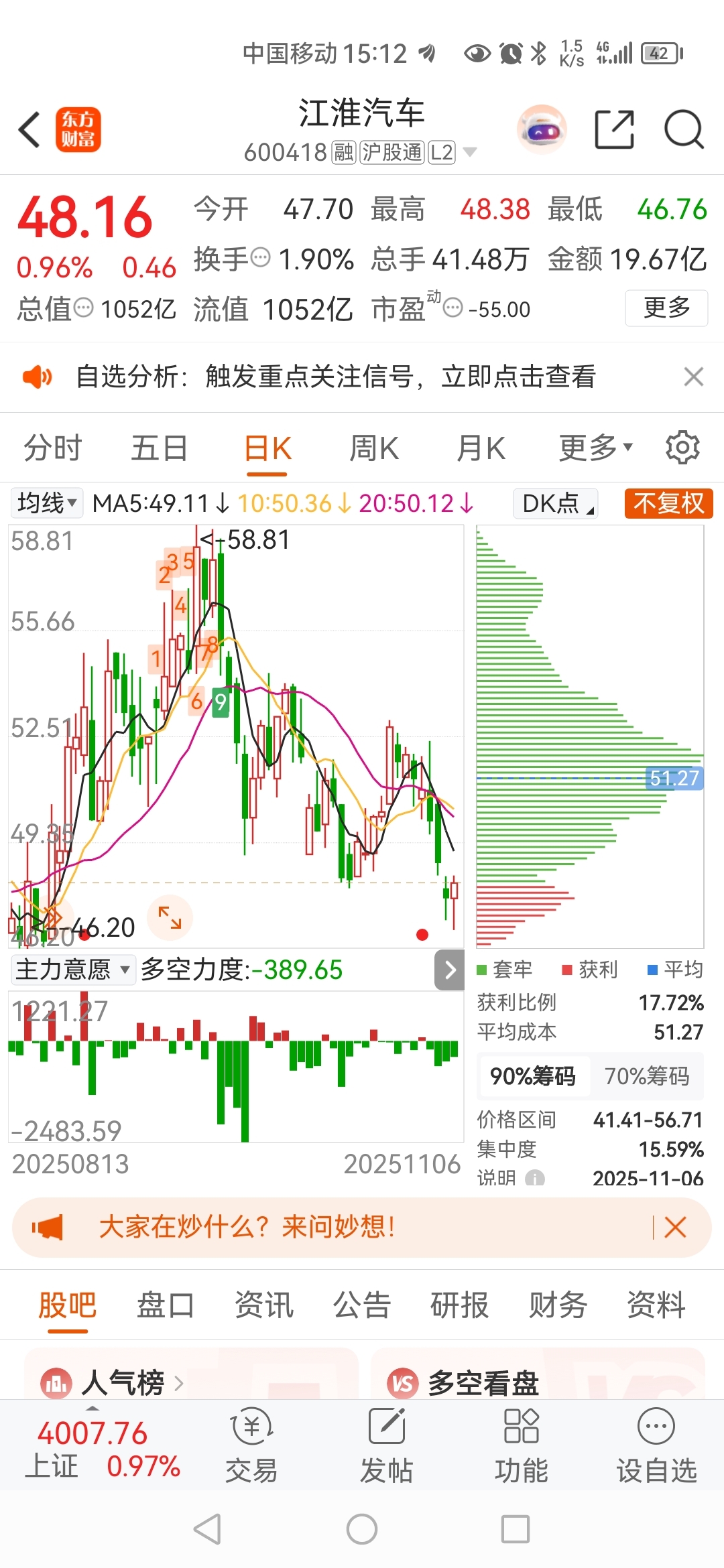 $江淮汽车(SH600418)$ 上次是从46开始启动往上涨的,难道这次……?