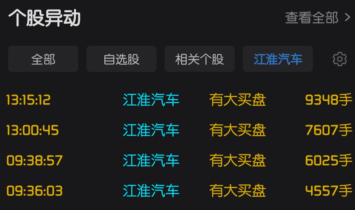 $江淮汽车(SH600418)$ 流出一早上都开始流入了,拉上去