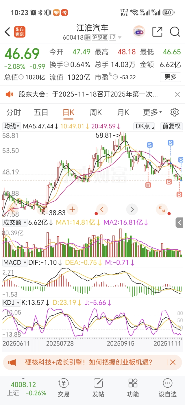 $江淮汽车(SH600418)$ 再次失败,三次买入三次都亏,继续等待吧