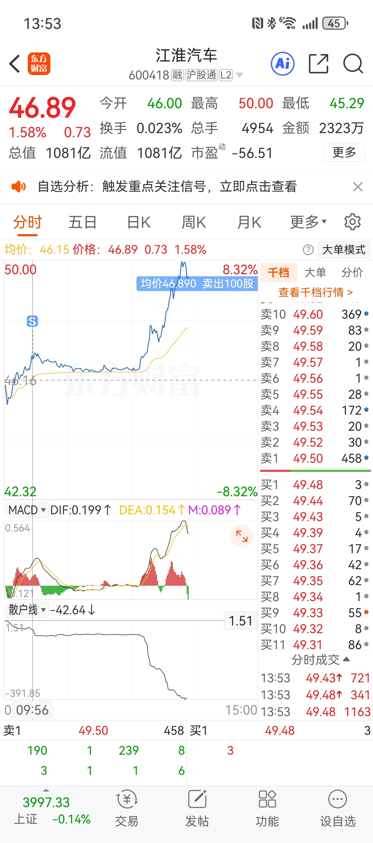 $江淮汽车(SH600418)$ 还好还好