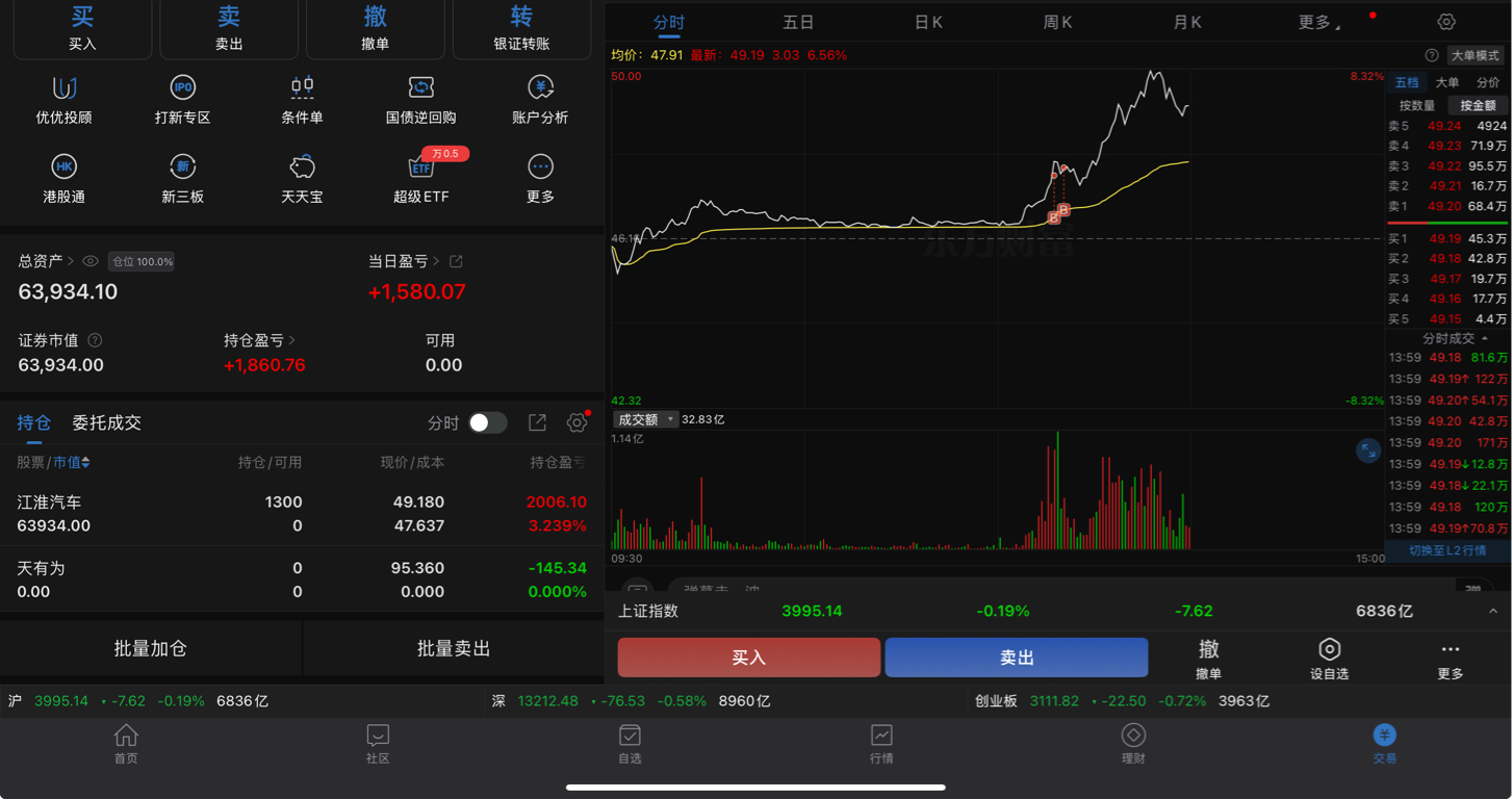 $江淮汽车(SH600418)$ 摸鱼刷成交额刷着玩看看,突然发现爆了五千个大单就跟了,买的莫名其妙的