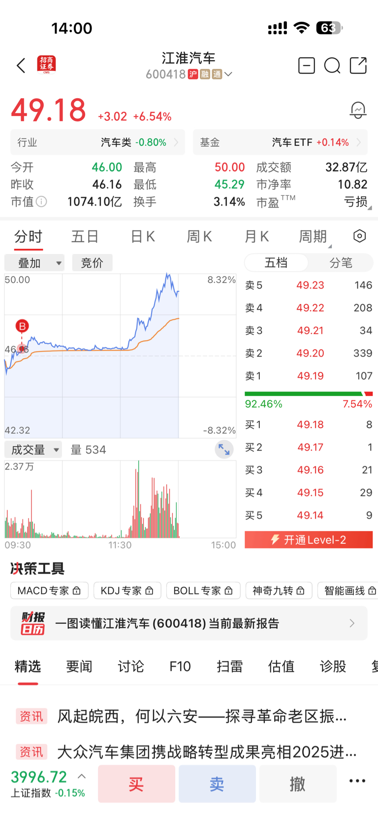 $江淮汽车(SH600418)$ 来了老弟,3000手压单