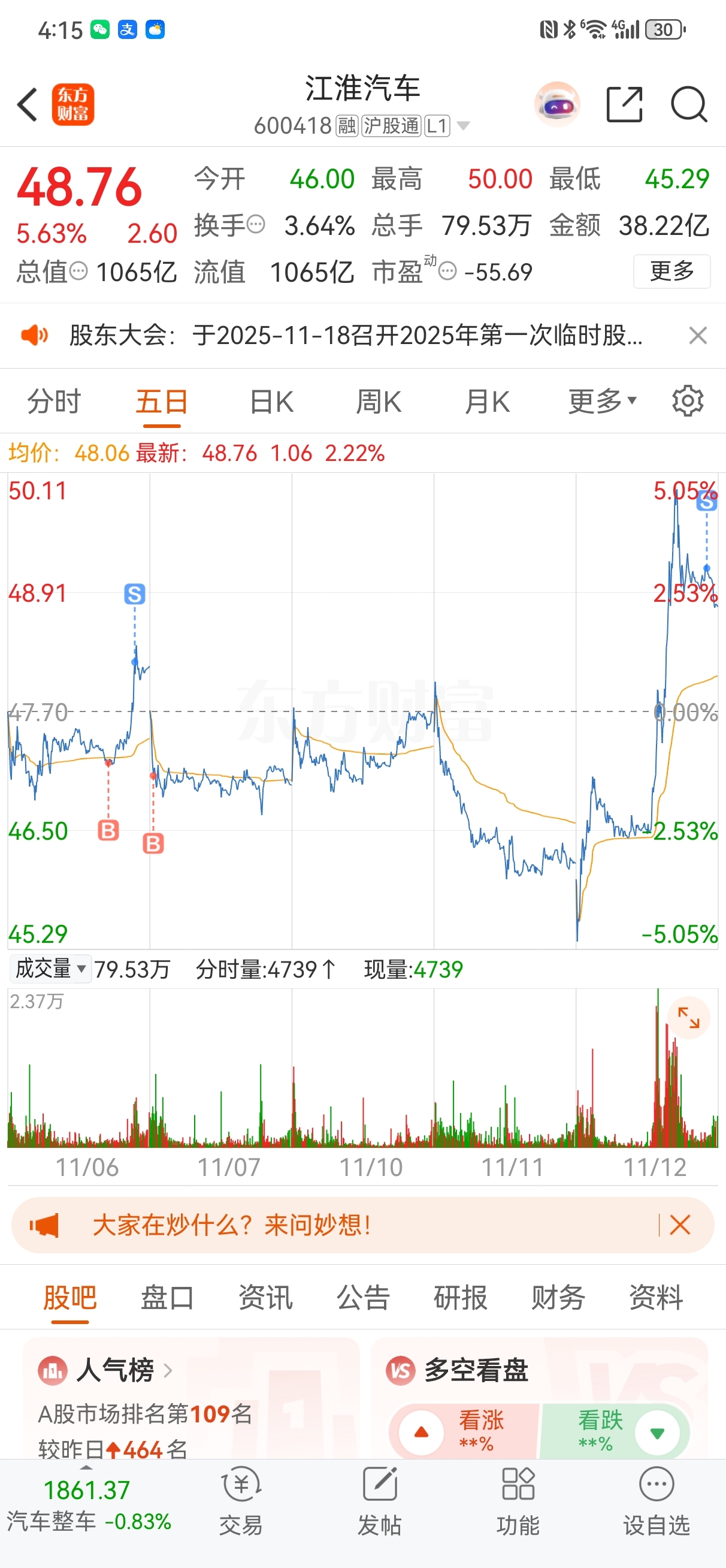 $江淮汽车(SH600418)$ 主力明天再让我T一下。