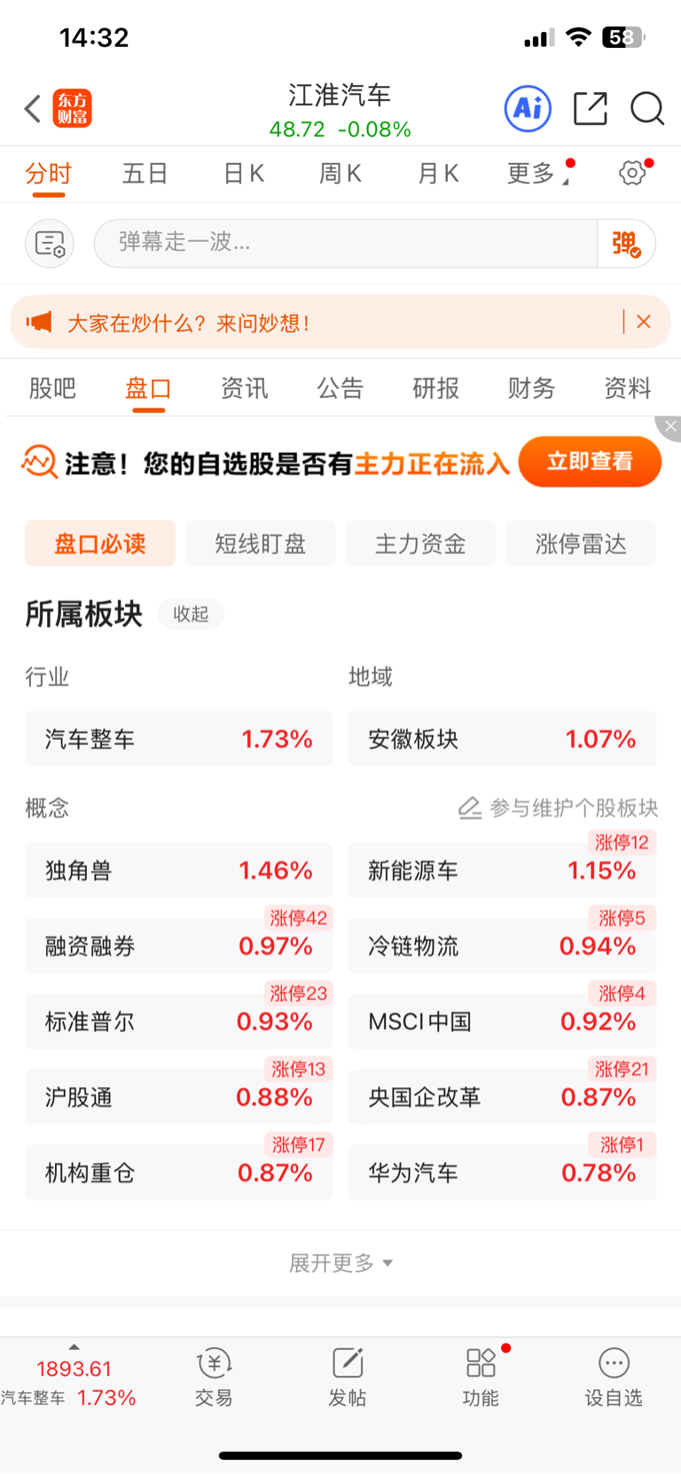 $江淮汽车(SH600418)$ 这么好都没涨啊