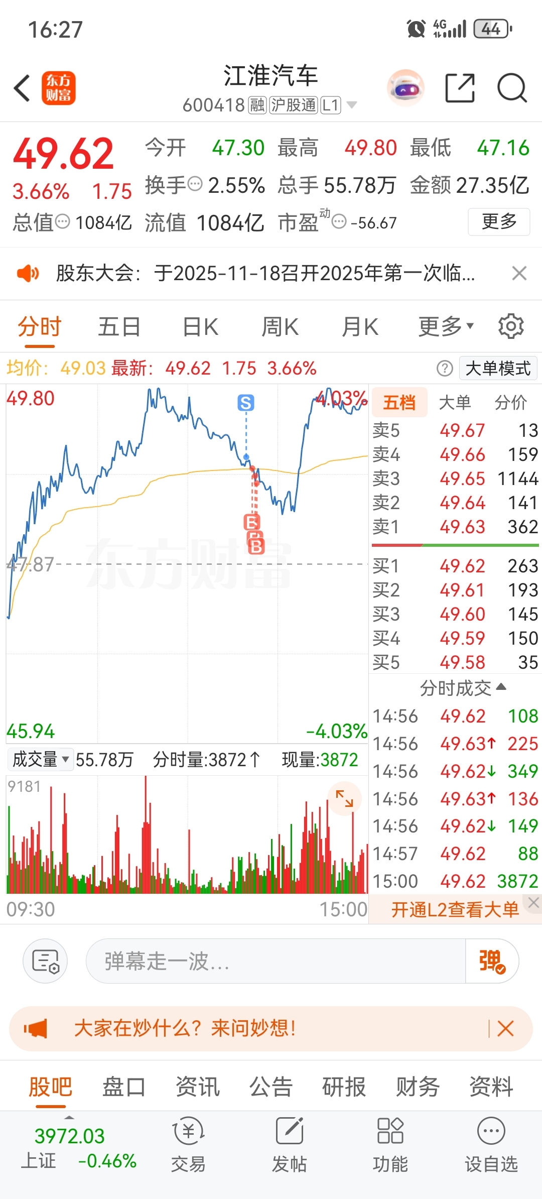 $江淮汽车(SH600418)$ 生怕踢错果断接回