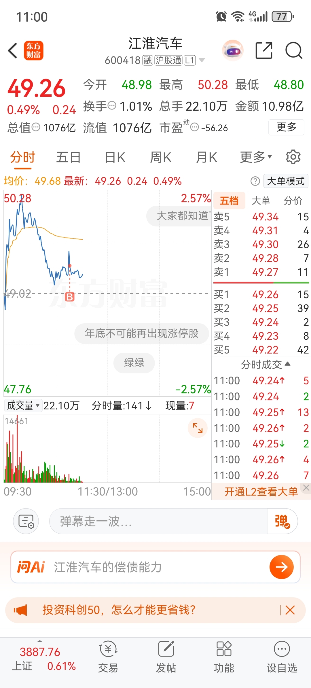$江淮汽车(SH600418)$ 一定要格局不服就干