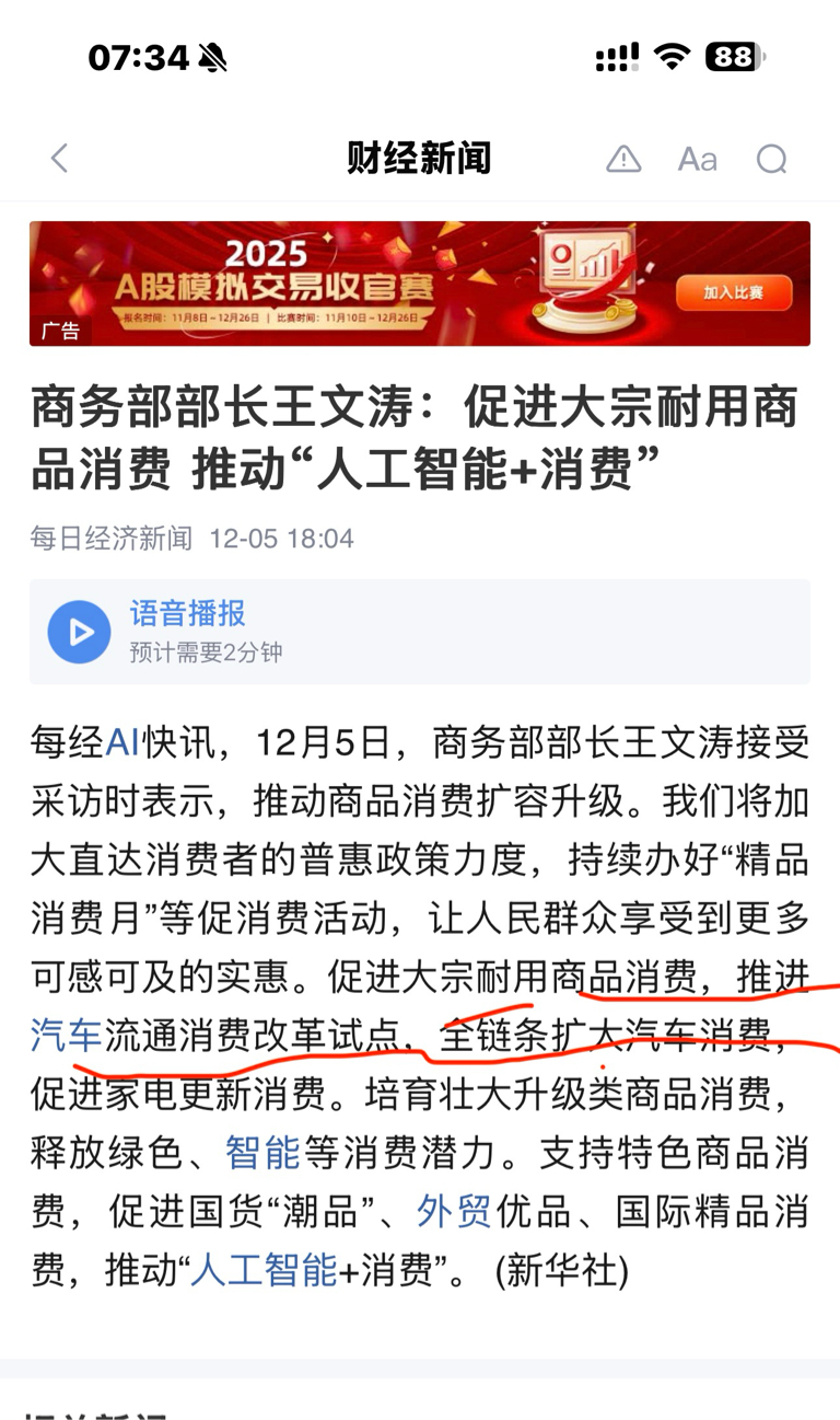 利好消息收盘就来了,汽车消费利好