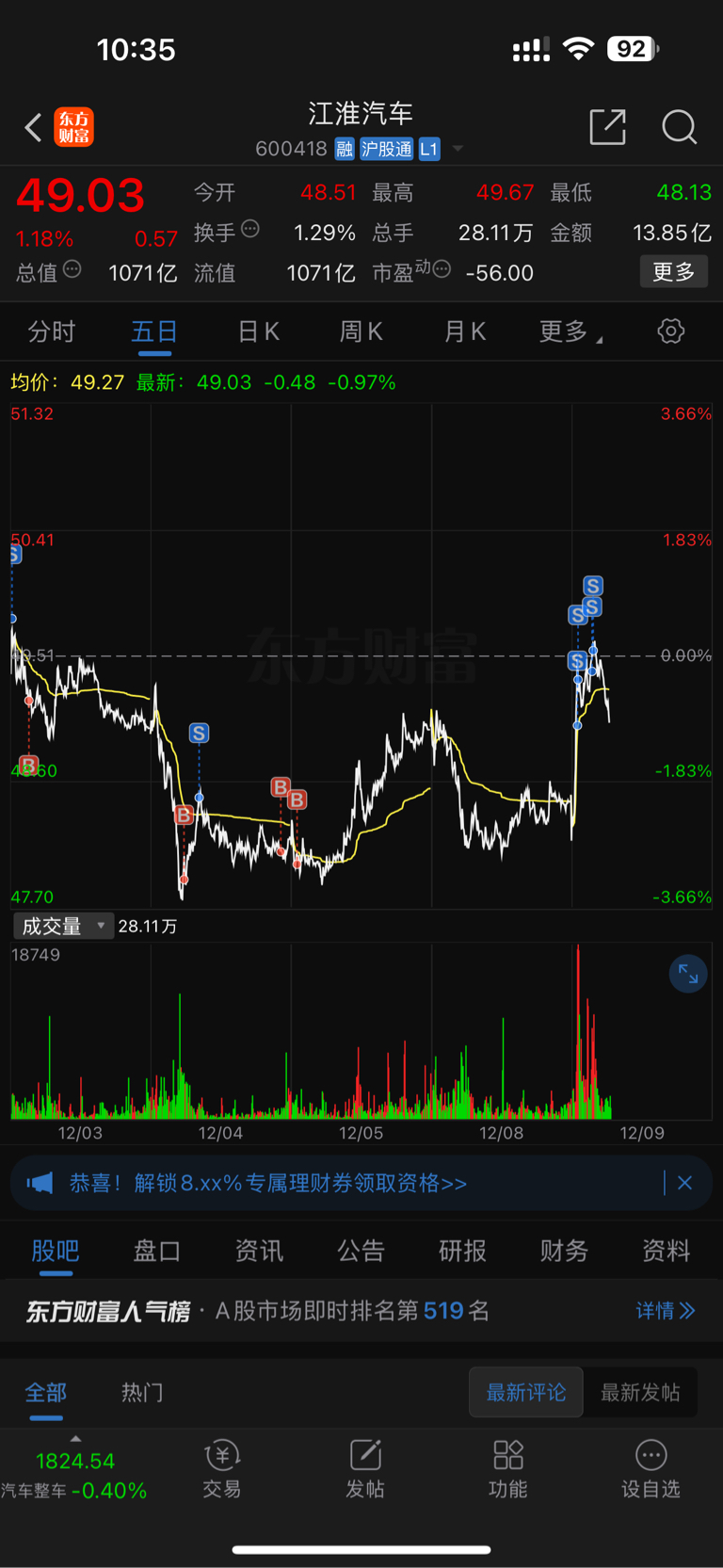 温馨提示: 1.根据《证券法》规定,禁止编造、传播虚假信息或者误导性信息,扰乱证券市场;2.用户在本社区发表的所有资料、言论等仅代表个人观点,与本网站立场无关,不对您构成任何投资建议。用户应基于自己的独立判断,自行决定证券投资并承担相应风险。《东方财富社区管理规定》