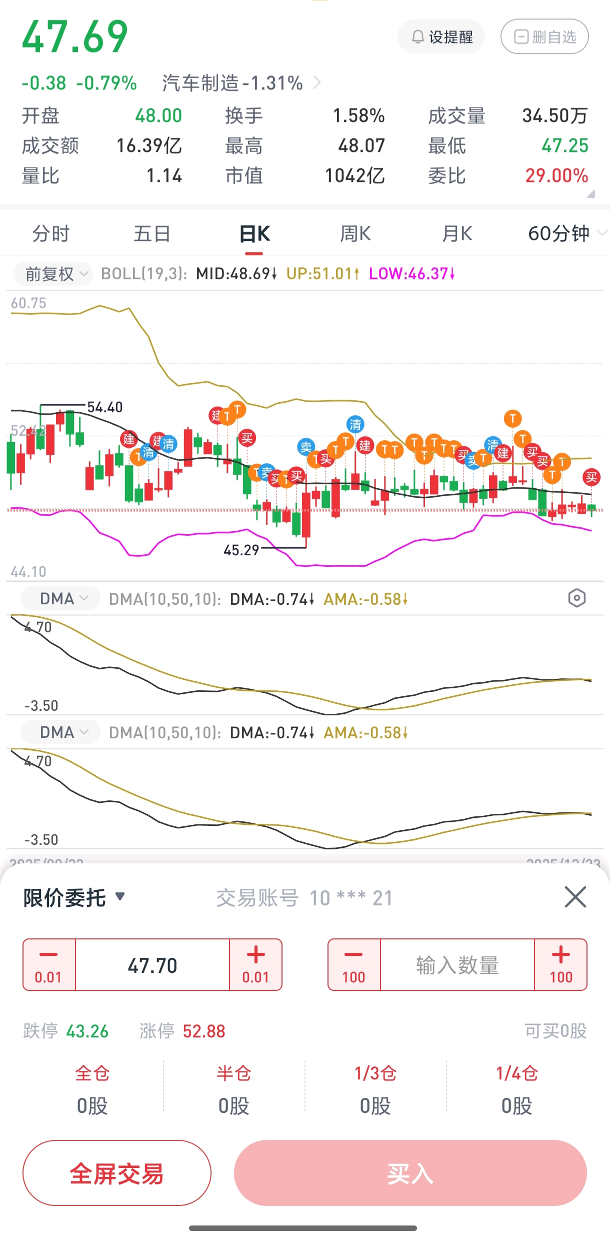 $江淮汽车(SH600418)$ 这两天波动小了。就不做t了。