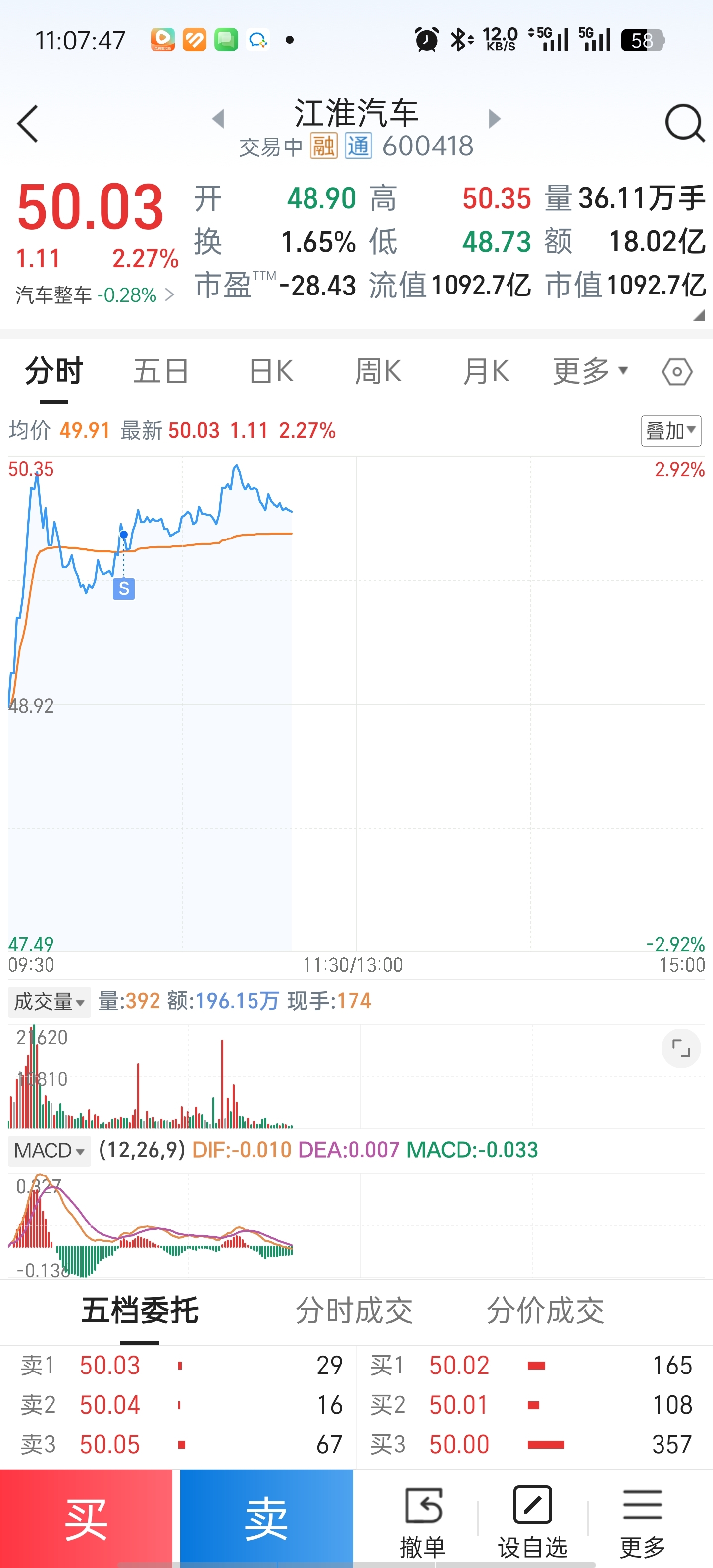 $江淮汽车(SH600418)$ 卖飞了两毛钱,