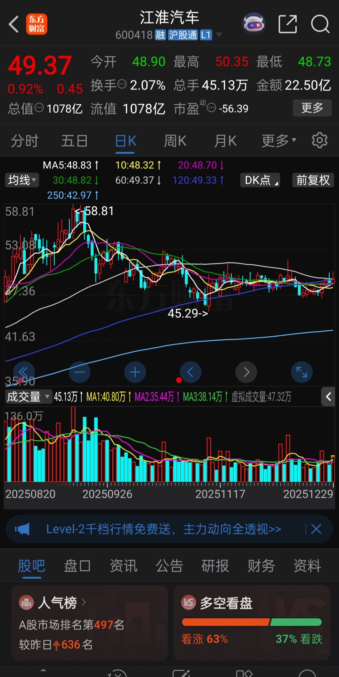 $江淮汽车(SH600418)$ 这波45以下必到,要挖大坑了,休息休息,元旦前都没有机会了,节后再战,明年再战。