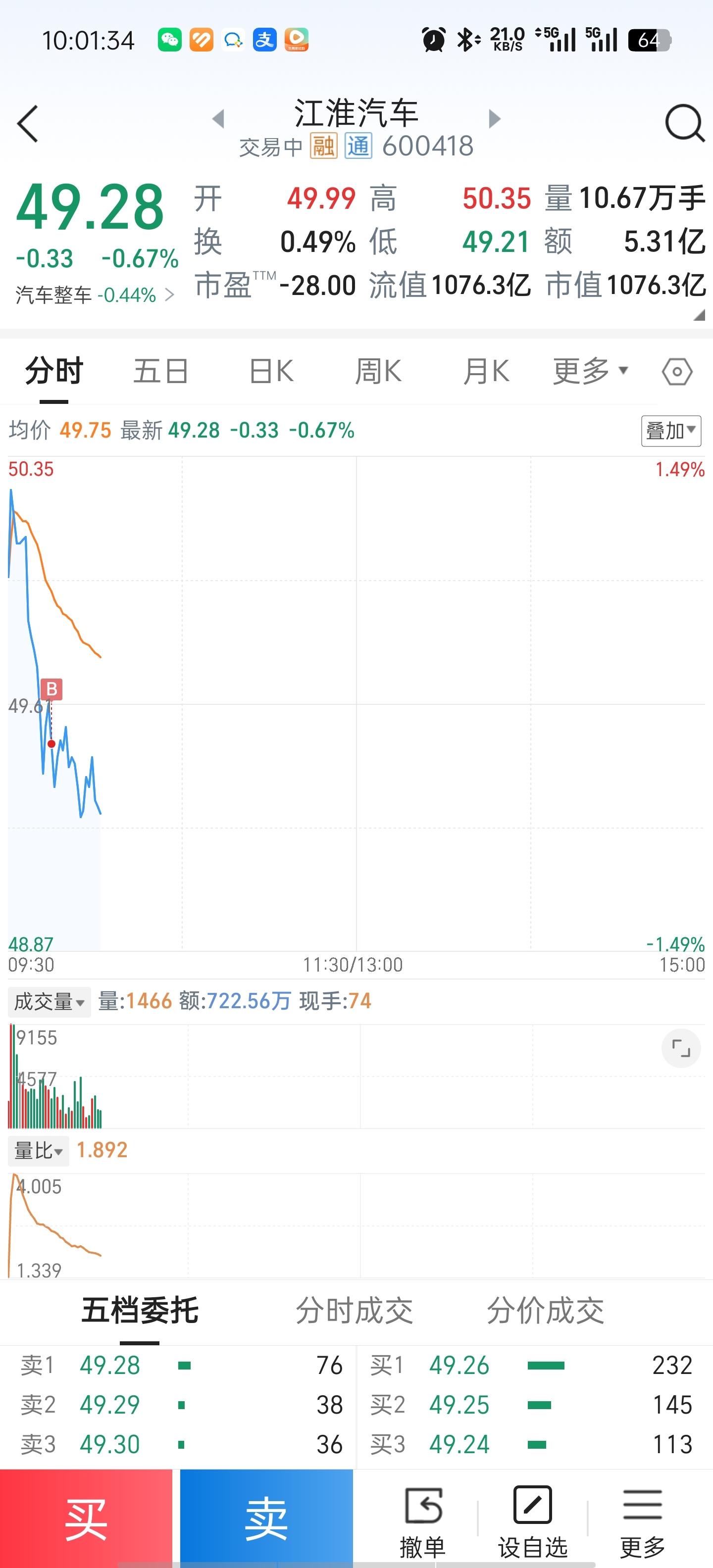 $江淮汽车(SH600418)$ 买早了,无了个大语