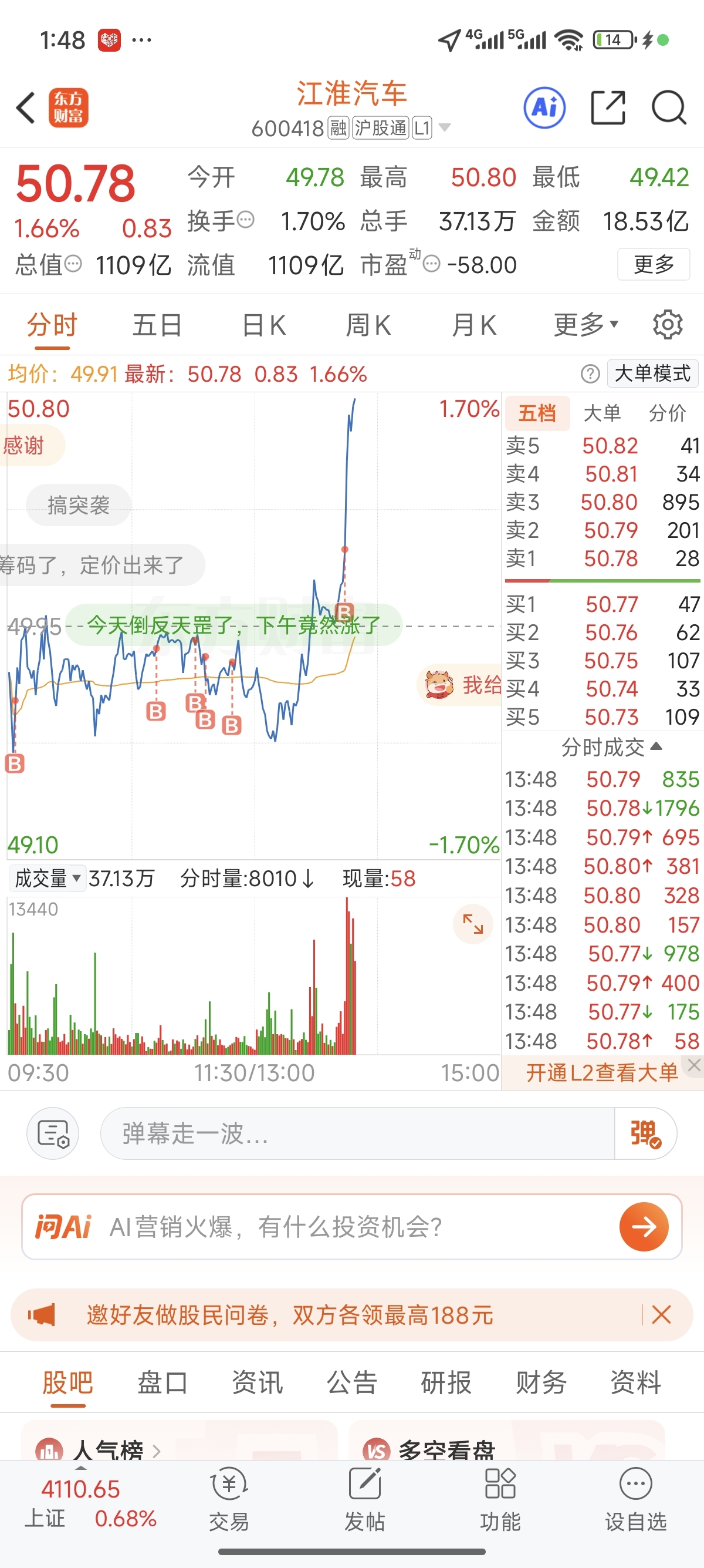 $江淮汽车(SH600418)$ 干活加仓