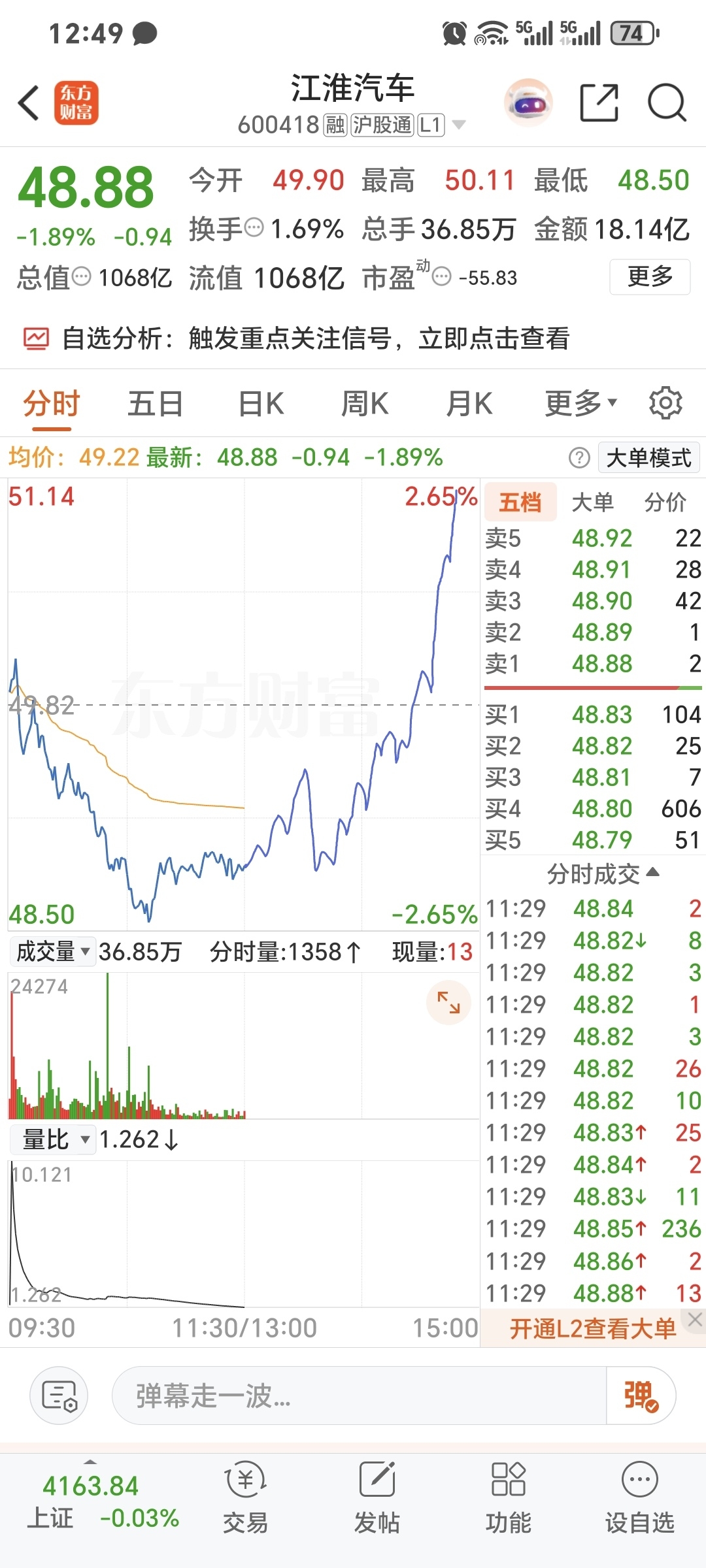 $江淮汽车(SH600418)$ 兄弟们,下午这样走你们会不会高兴点