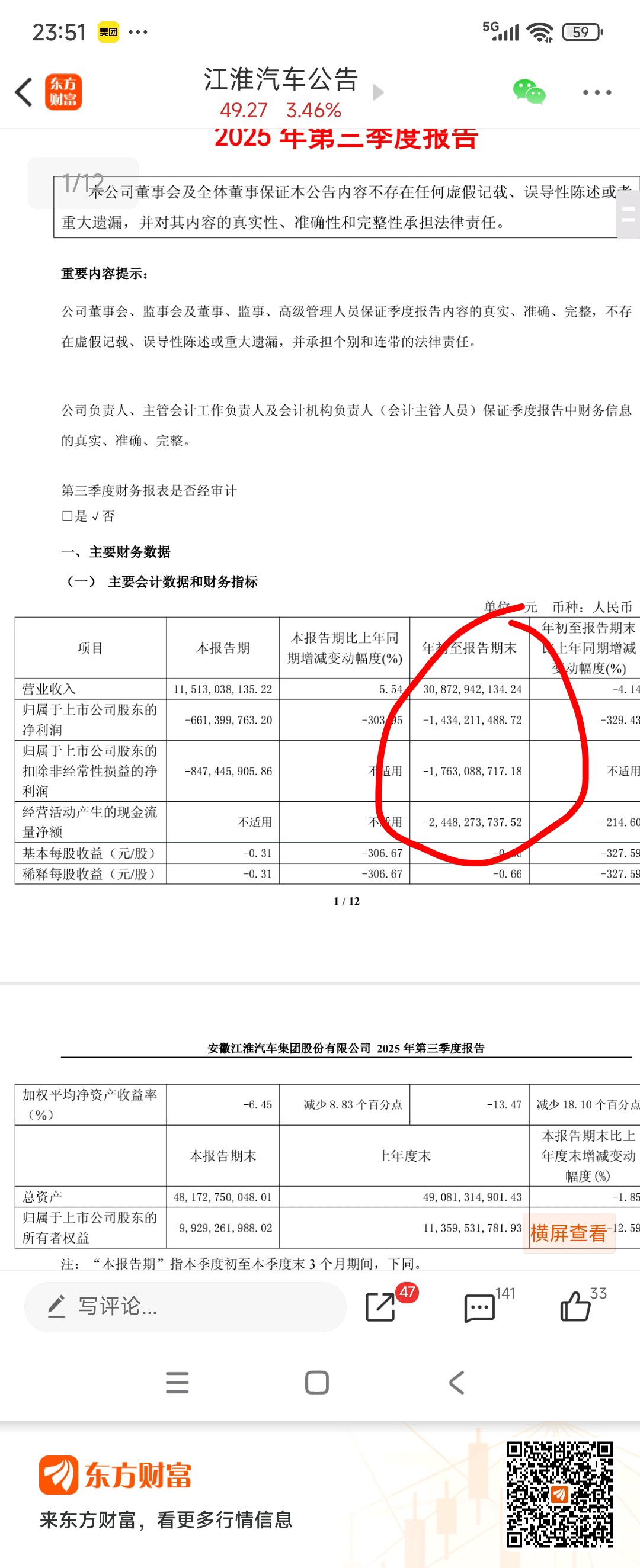 大利好!数据说话!按扣非算,三季度亏17.6,全年亏24.7,第四季度亏损7.1个亿。三季度大众安徽计提2.1,全年计提10.8,增加计提8.7。算下来,四季度尊界经营盈利1.6亿。 扣非,概算,其它假设不变。数据说话,不同意的也请数据分析!