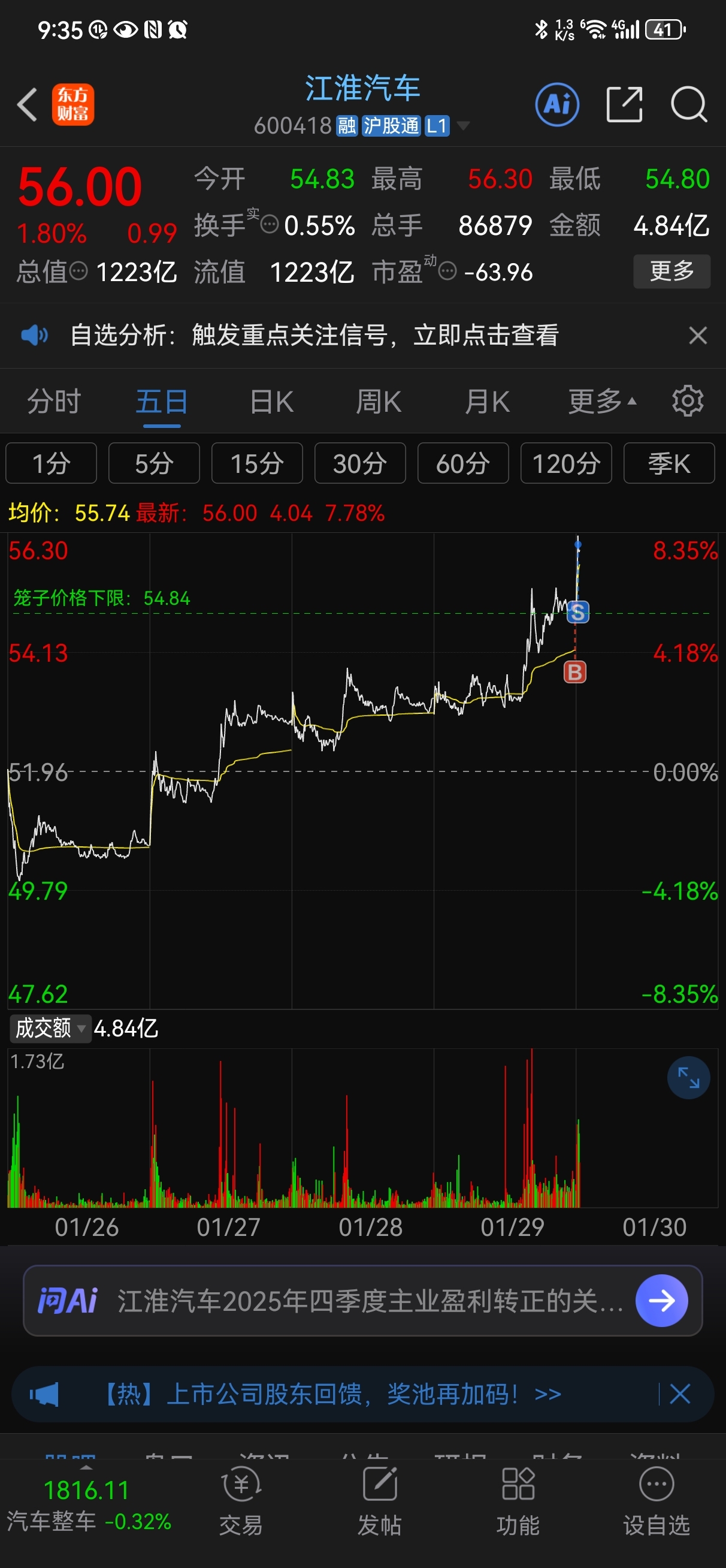 $江淮汽车(SH600418)$ 怕怕的,先跑了