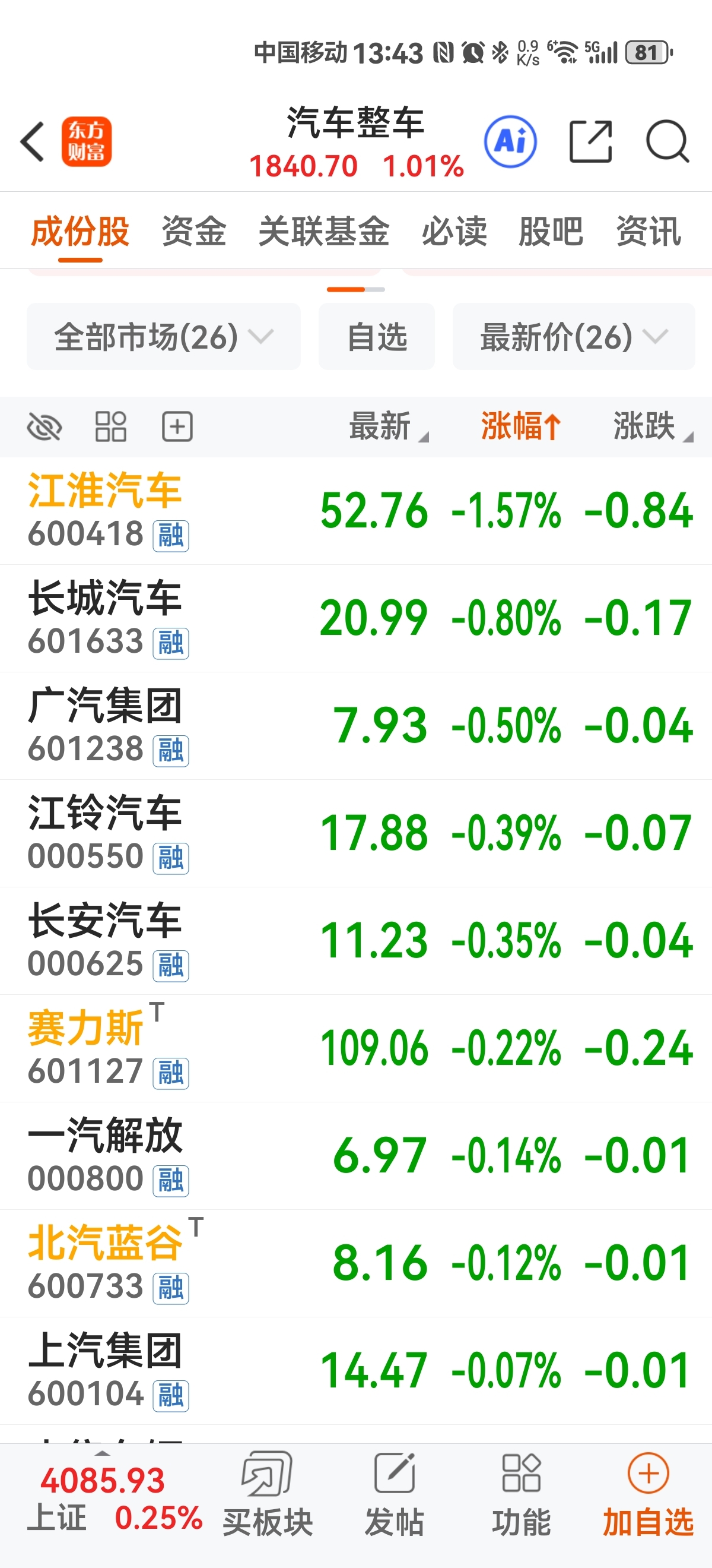 $江淮汽车(SH600418)$ 汽车板块倒数第一