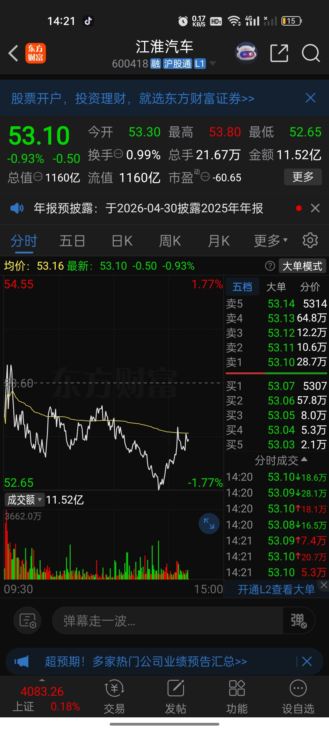 $江淮汽车(SH600418)$ 拉高诱多,等下继续砸盘,不砸到45不行啊,见证下砸盘的力量