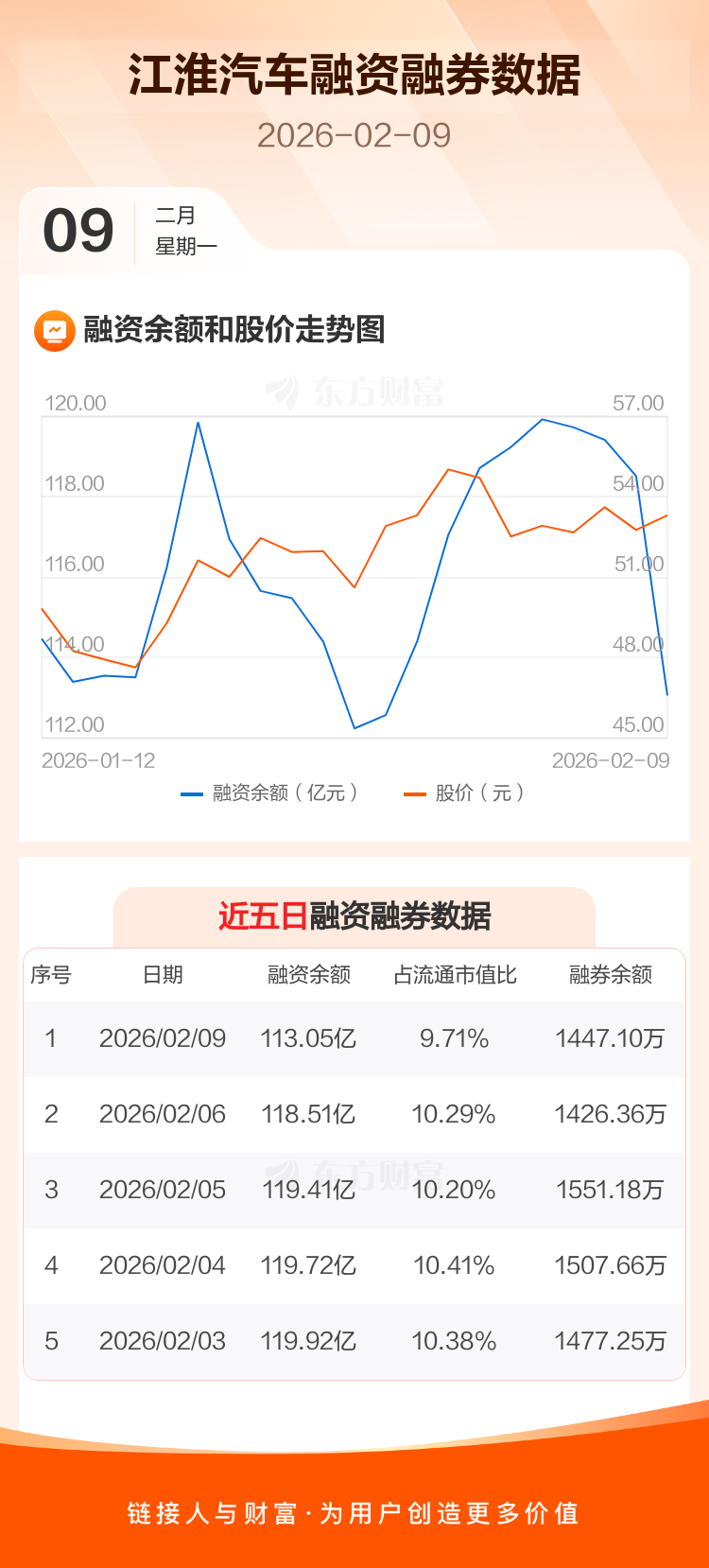江淮汽车:融资净偿还5.45亿元,融资余额113.05亿元