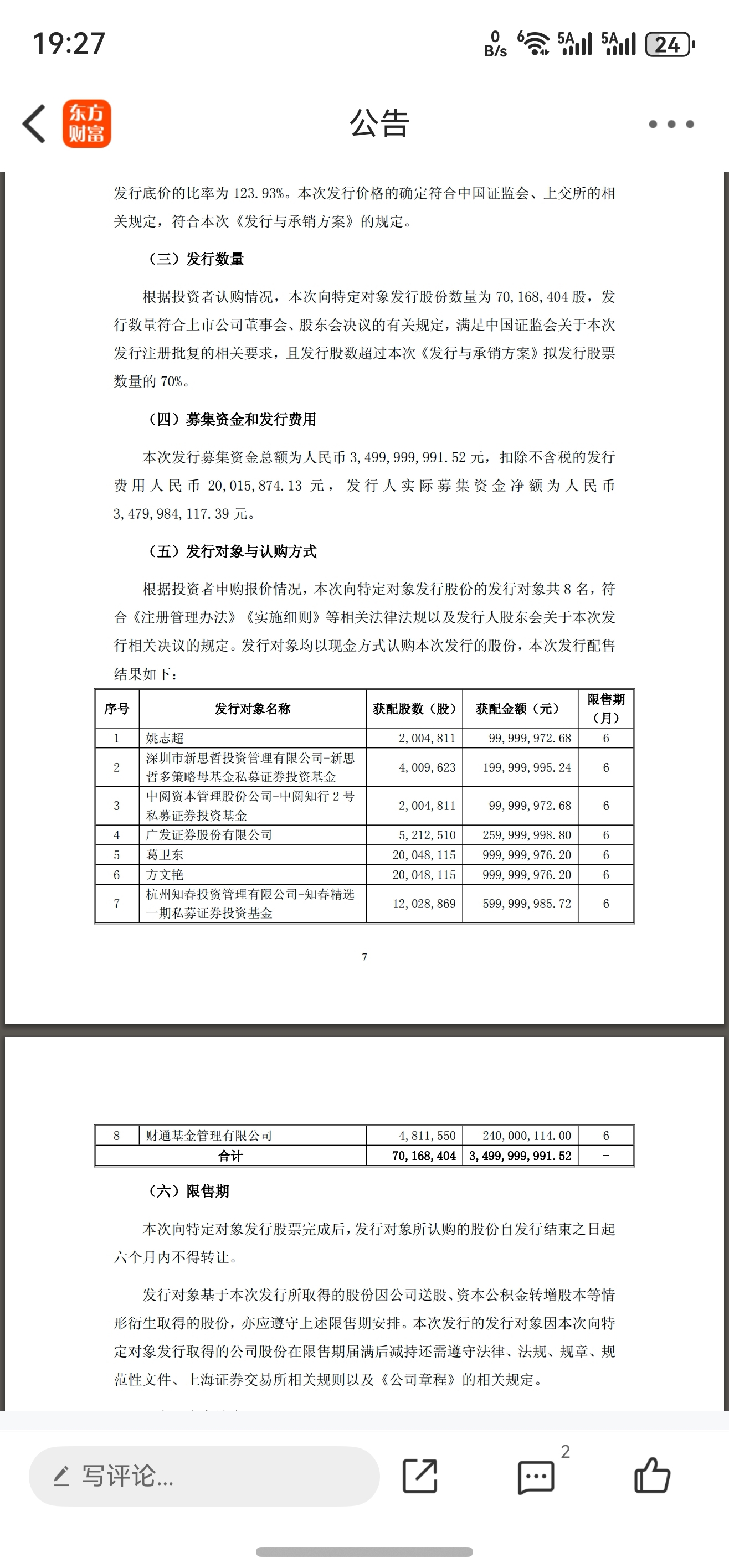 居然才折价10%不到,这波最起码得看到70以上,葛卫东跟章盟主都参与定增