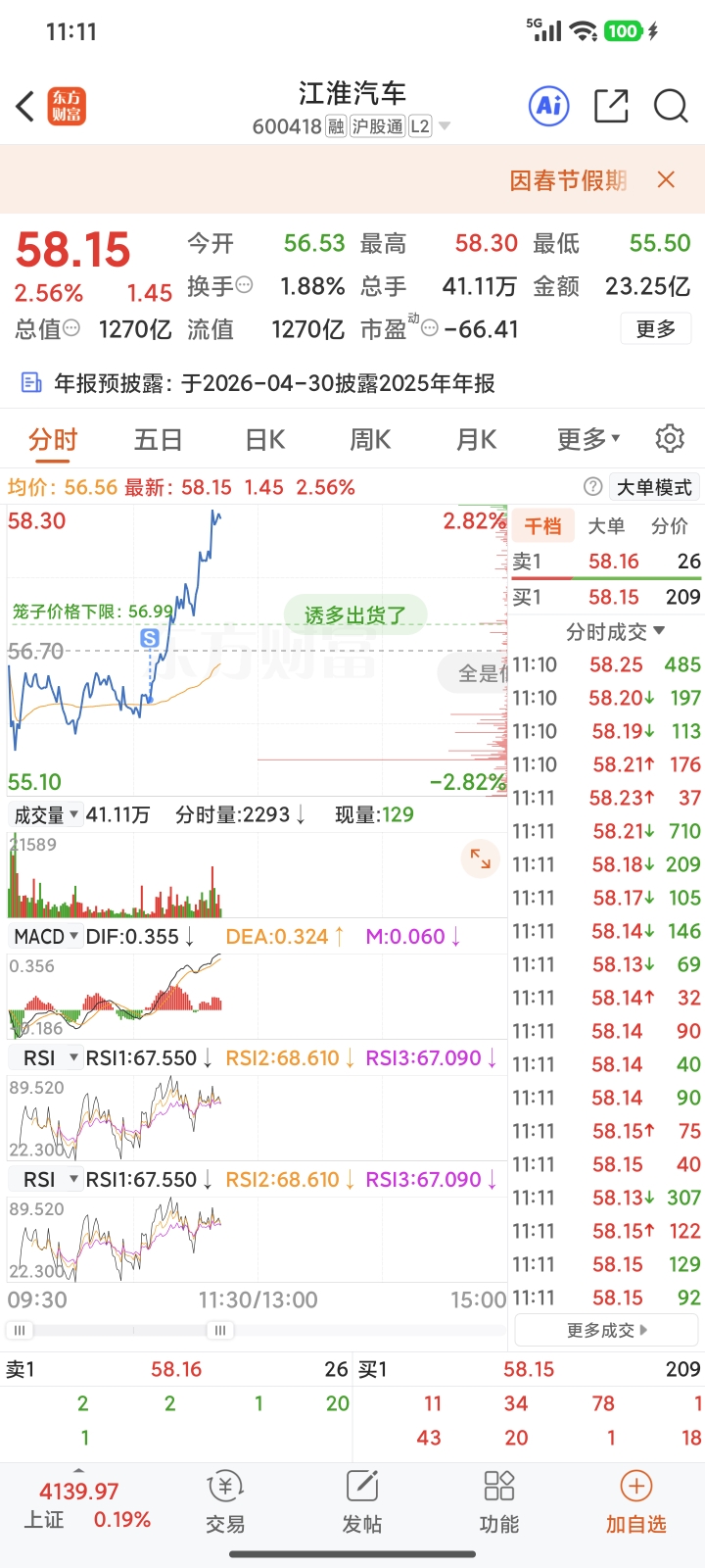 $江淮汽车(SH600418)$ 合着就差我这点呗?