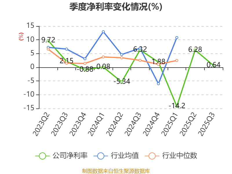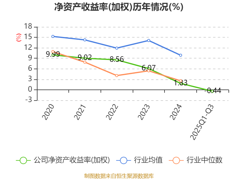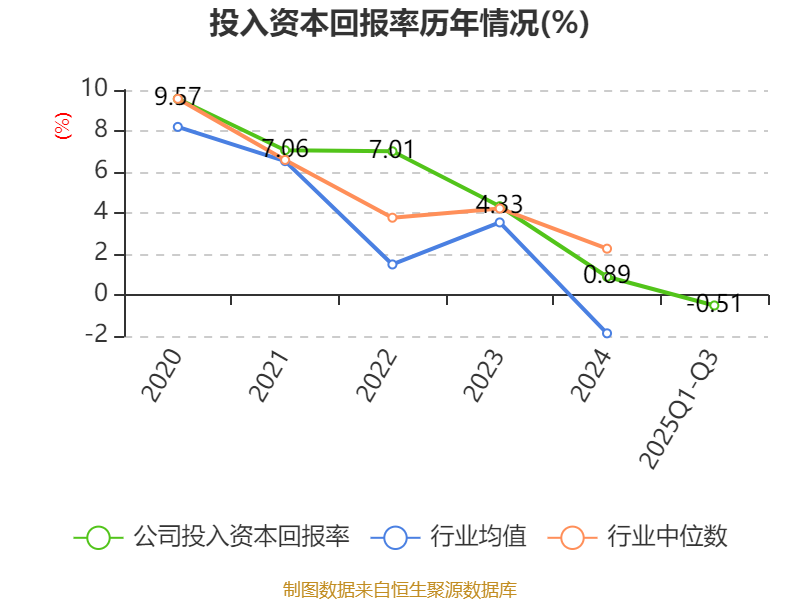 盈利能力方面, 2025年前三季度公司加权平均净资产收益率为-0.44%,同比下降1.37个百分点。公司2025年前三季度投入资本回报率为-0.51%,较上年同期下降1.23个百分点。
